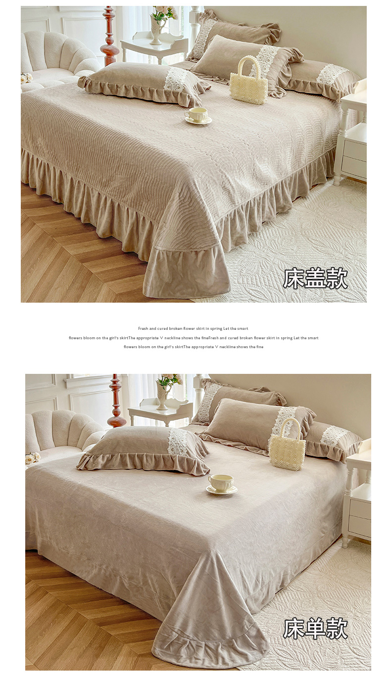 (总)乐朵家居 2025新款 宝格 牛奶绒床单款夹棉床盖四件套【床单款控价268 床盖款298】,浅豆沙,琉离紫,抹茶绿,天空灰,浅卡其