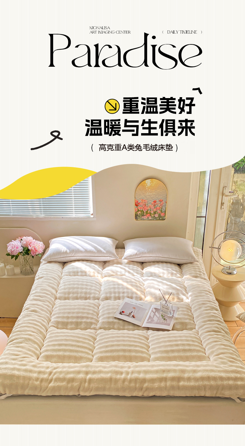 (总)缦卡琳家纺 2024新款A类高克重纯色兔毛绒床垫