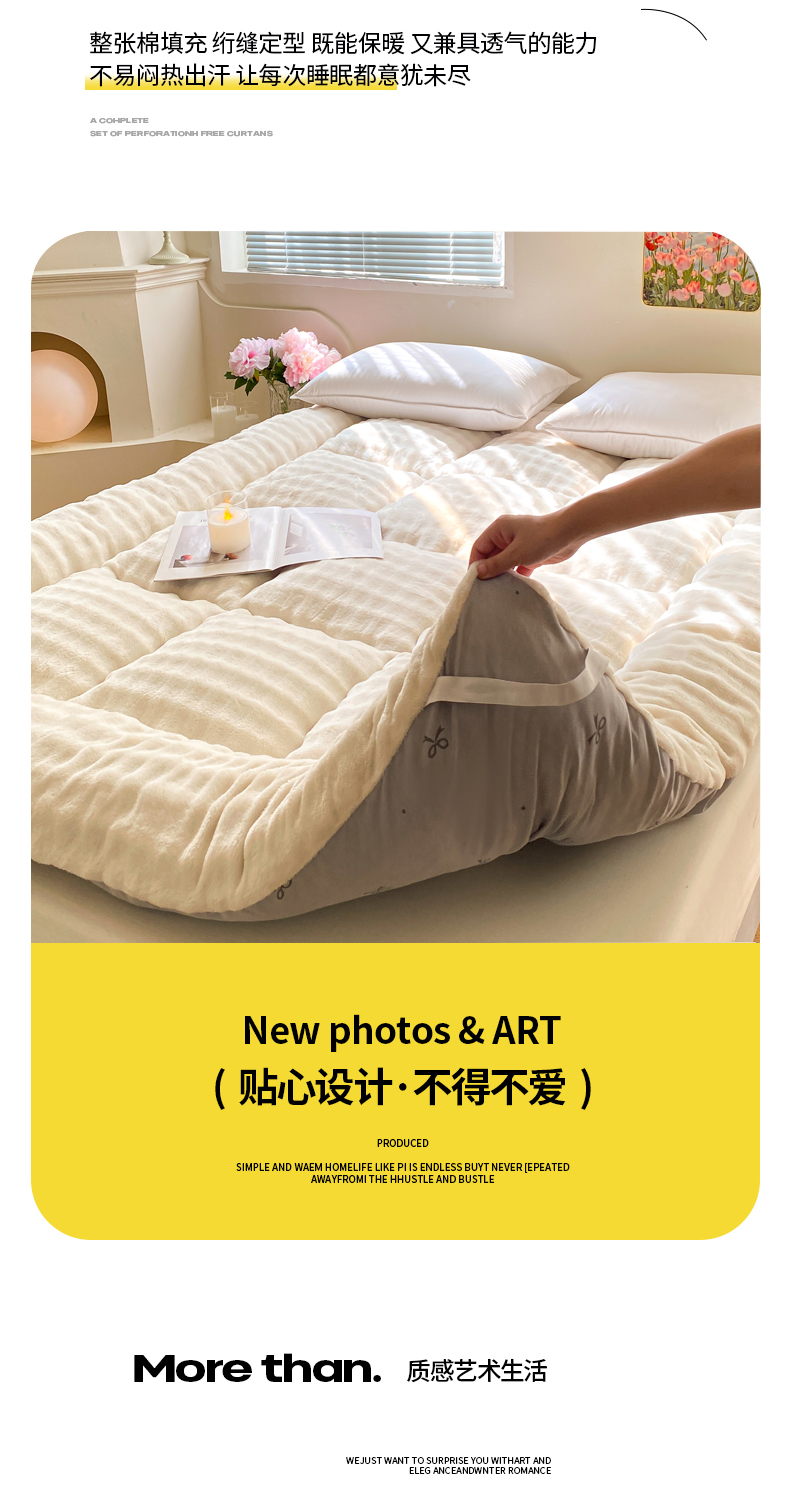 (总)缦卡琳家纺 2024新款A类牛奶绒羽丝棉床垫,爱情兔粉,爱心蝴蝶结,爱心兔,恐龙宝贝,向阳花开,小南瓜,小情调蓝,小情调米白,阳光心情,郁金香