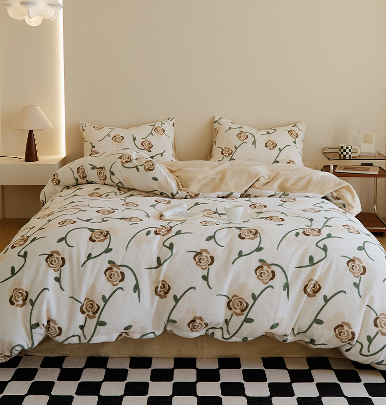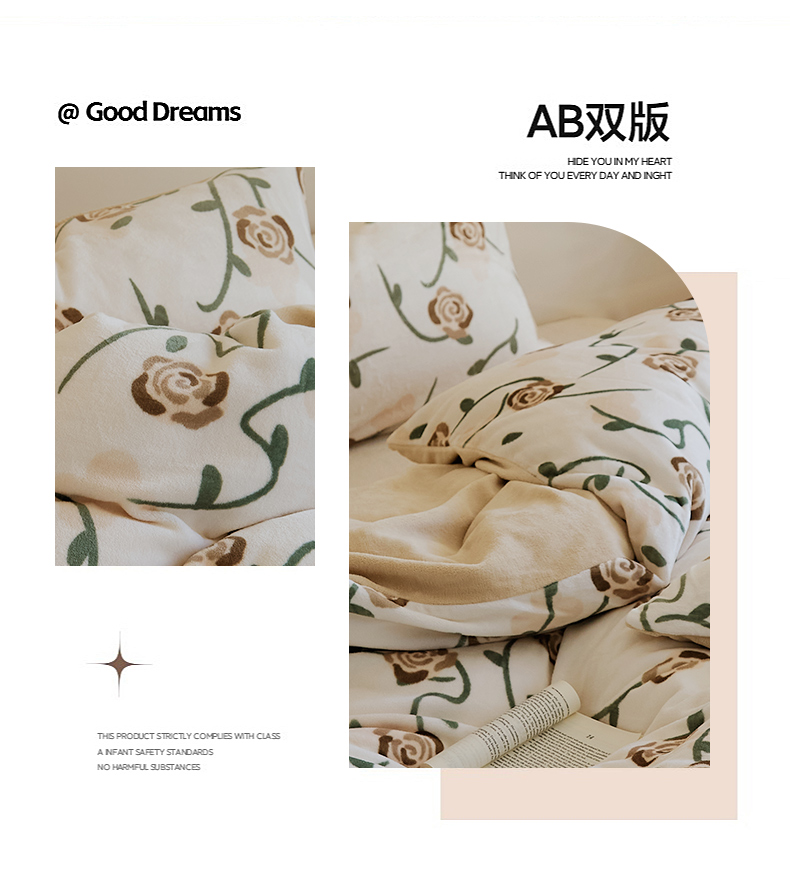 (总)时光里 2024新款数码独版印花牛奶绒四件套