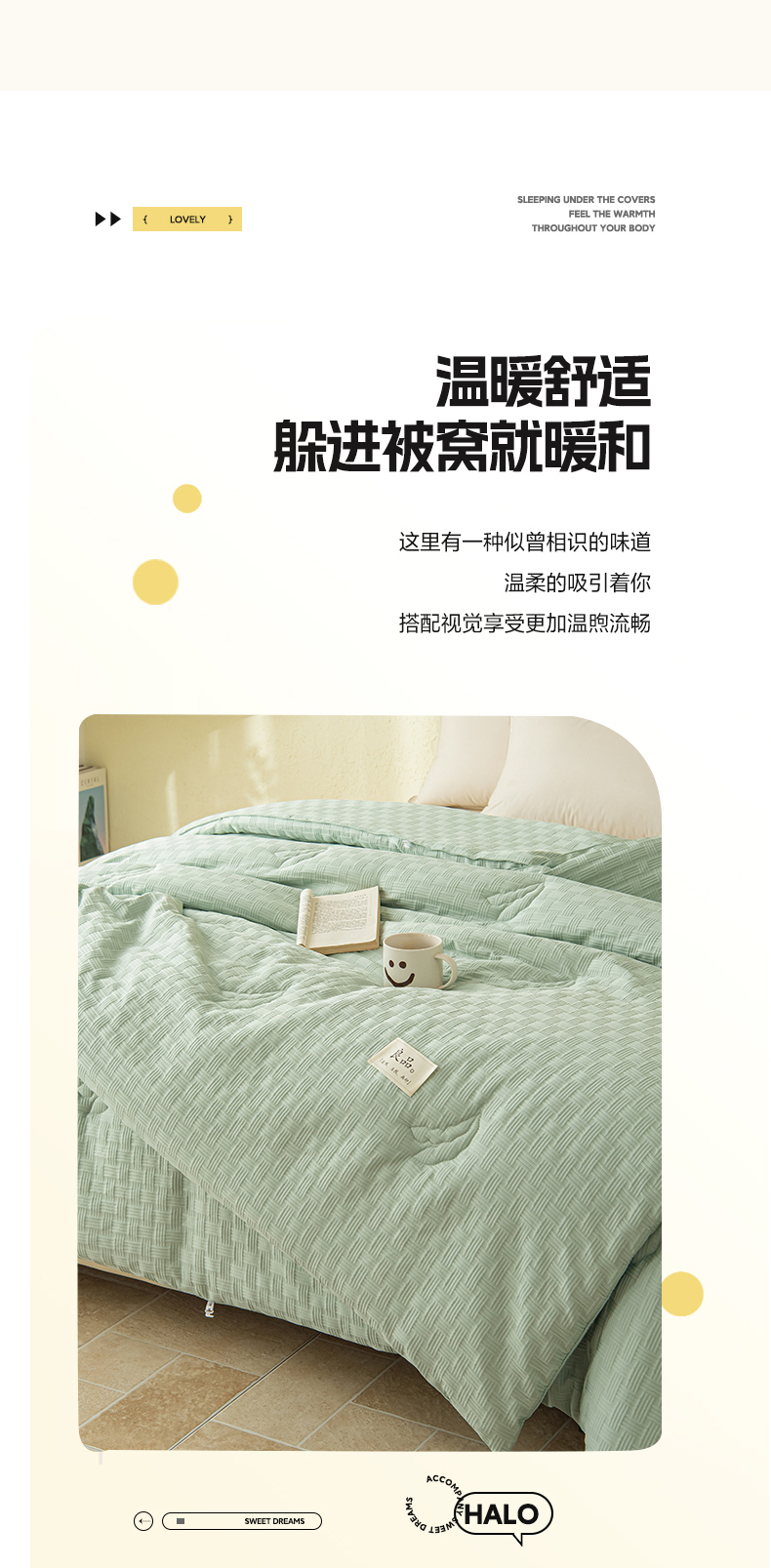 • 91家纺网 家纺一手货源 找家纺 (总)鸣升家纺 2026新款全棉色织水洗棉贝壳边棉花空调被夏凉被夏被四件套,果绿,姜黄,莎粉,天空蓝,月光灰,组合图仅供参考不可下单