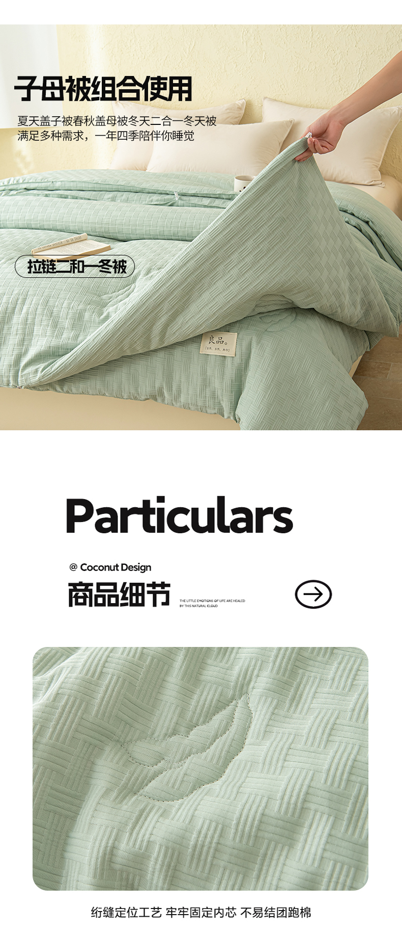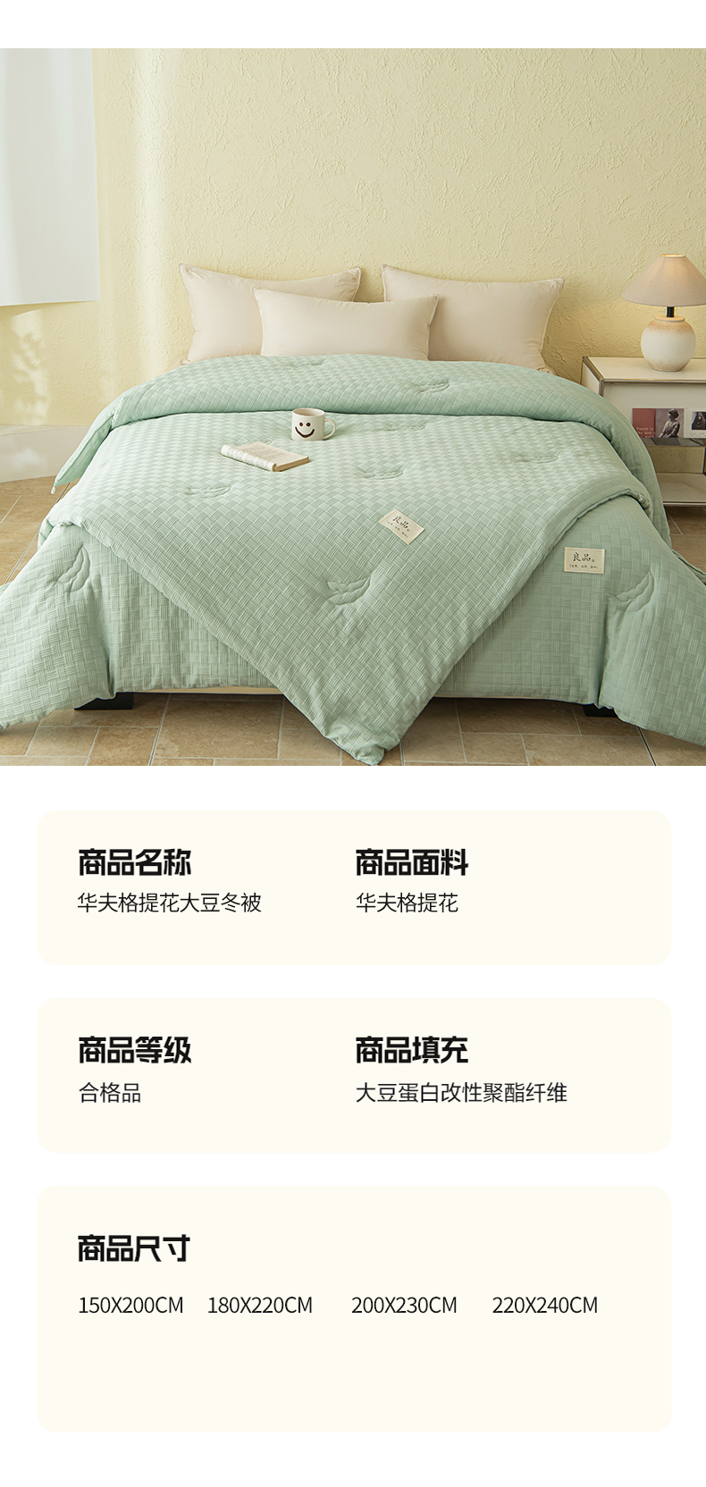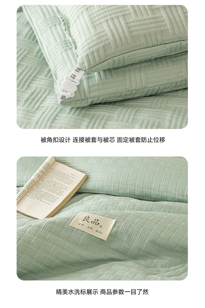 新款华夫格提花大豆被冬被被子被芯二合一子母被 清新绿
