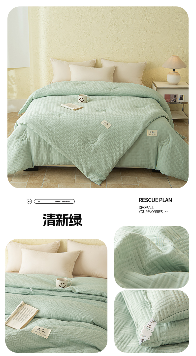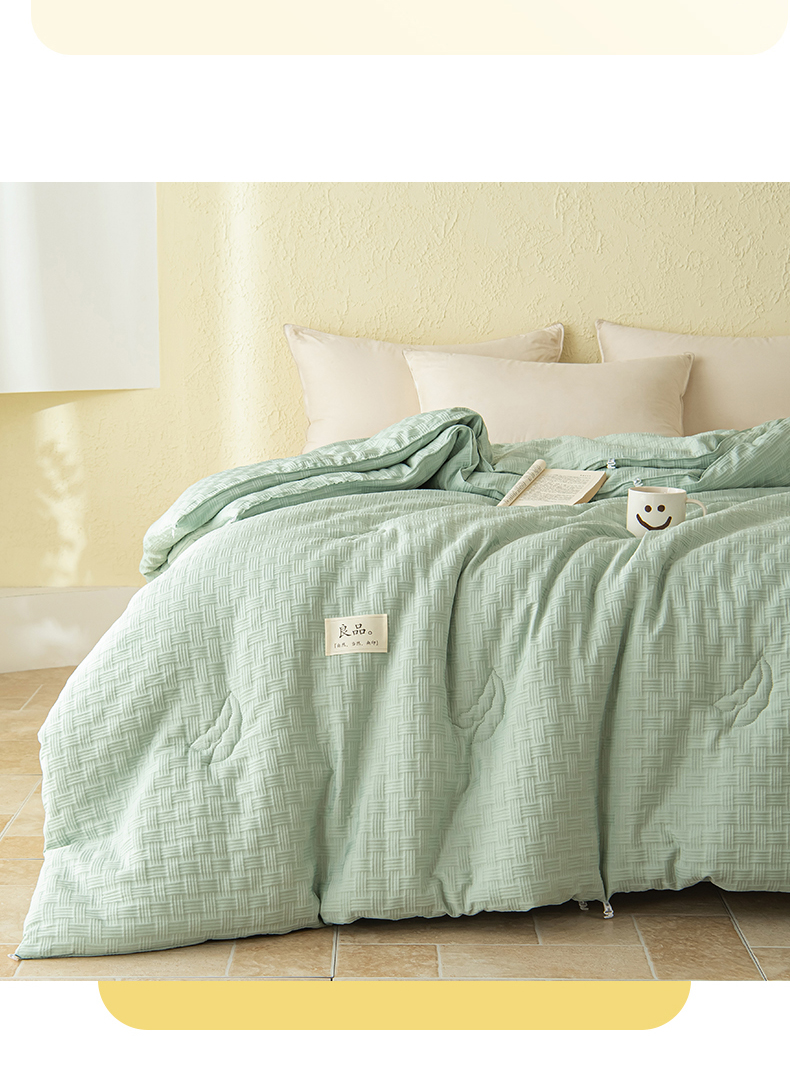 • 91家纺网 家纺一手货源 找家纺 新款华夫格提花大豆被冬被被子被芯二合一子母被 清新绿
