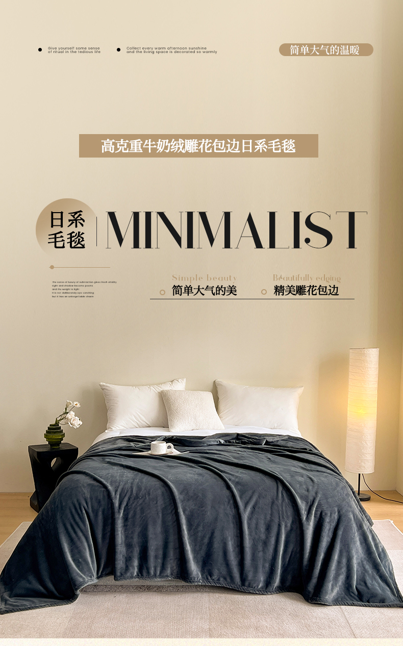 网客家纺 2024新款日系休闲保暖毯(外贸跨境专供) 摩登灰