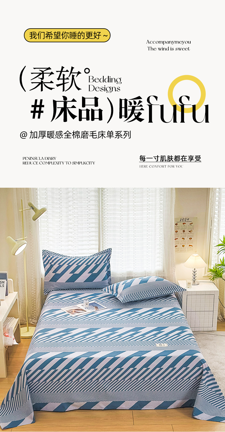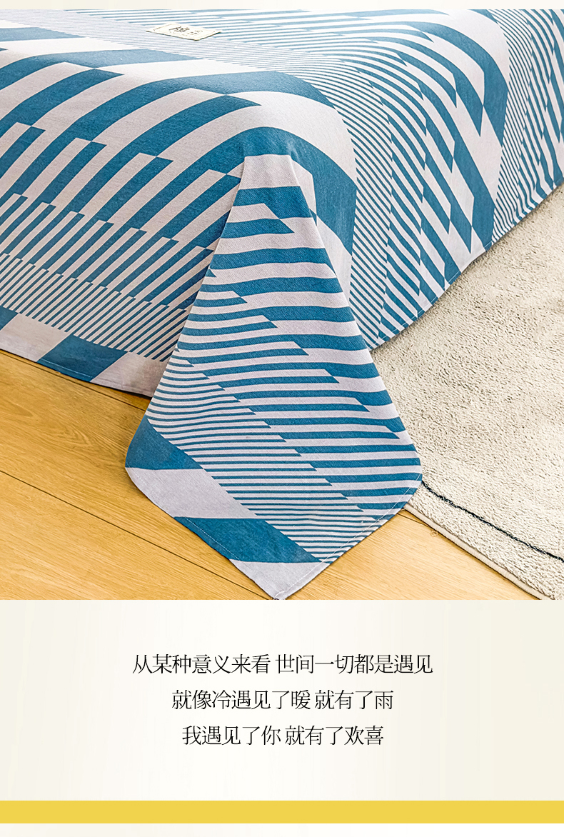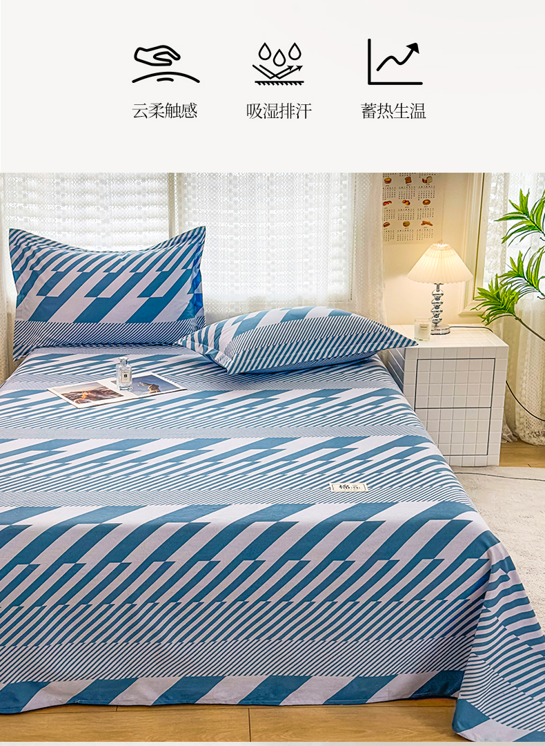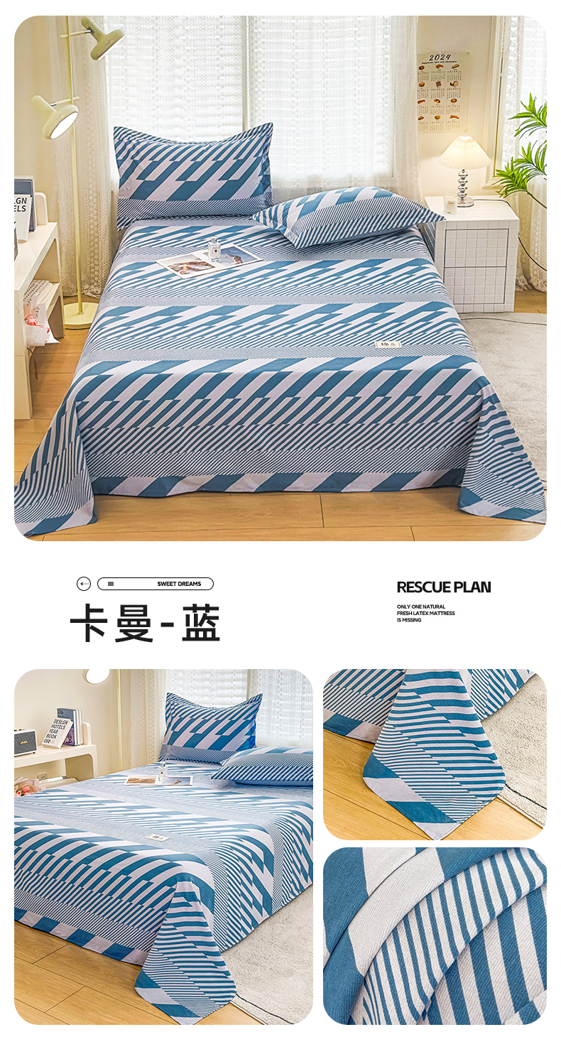 • 91家纺网 家纺一手货源 找家纺 丝芙妮家居(原乐视家纺) 2024新款全棉磨毛多规格AB版单品套件系列(第二波)--单床单及三件套 卡曼-蓝