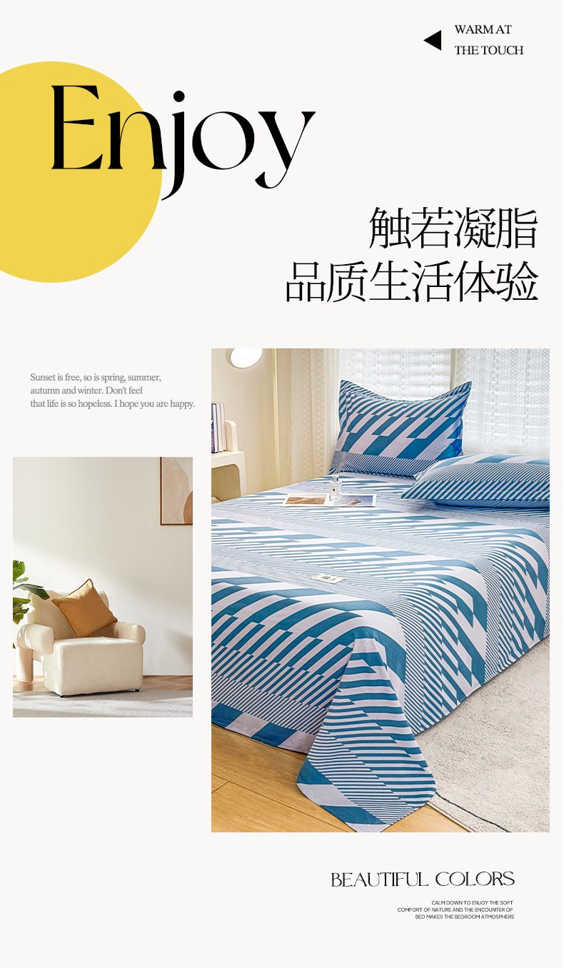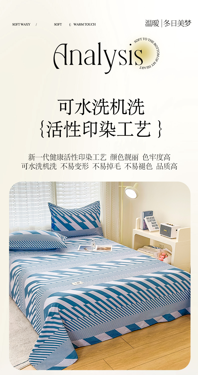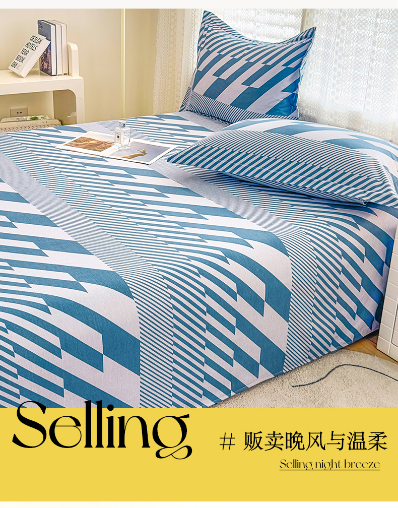 • 91家纺网 家纺一手货源 找家纺 丝芙妮家居(原乐视家纺) 2024新款全棉磨毛多规格AB版单品套件系列(第二波)--单床单及三件套 卡曼-蓝