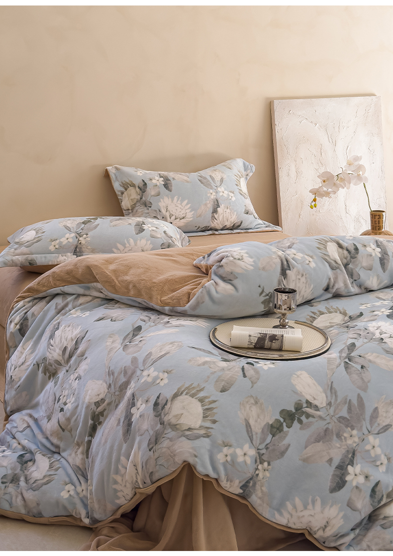 三味舒屋 2024新款小清新数码印花牛奶绒四件套-花艺系列 兰亭