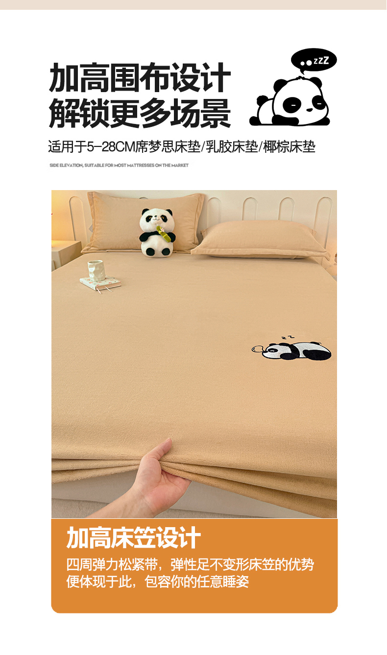 商品名称:梵克保罗 2024新款秋冬新款保暖加厚纯色牛奶绒泡泡熊刺绣单品单床笠 泡泡熊-豆沙