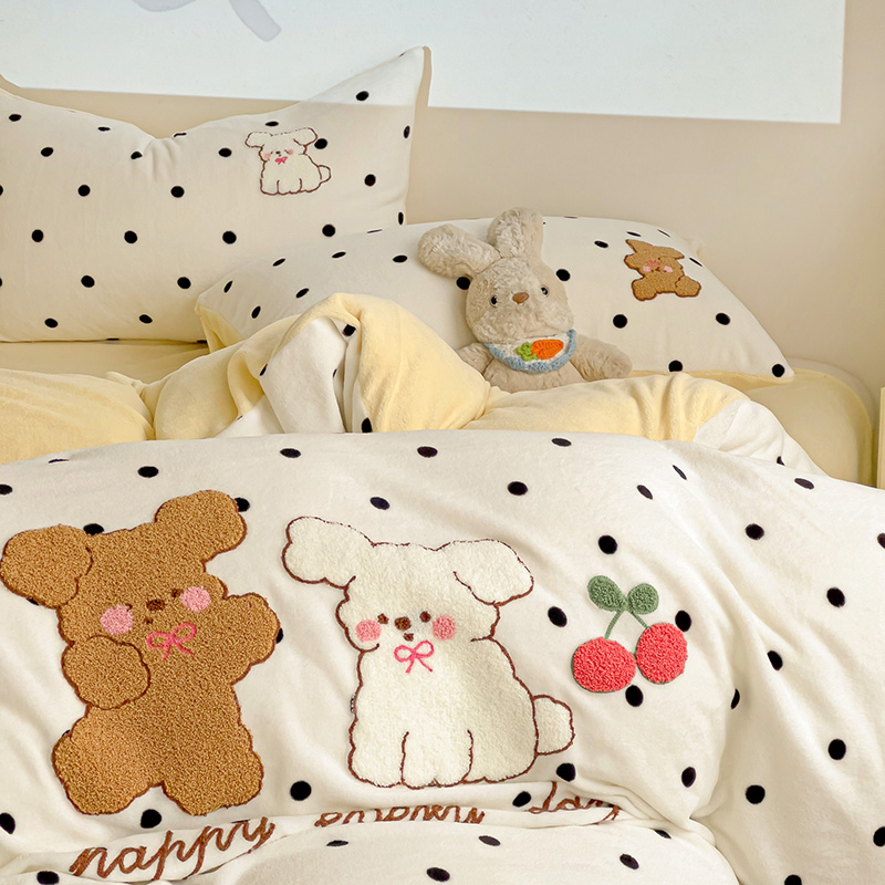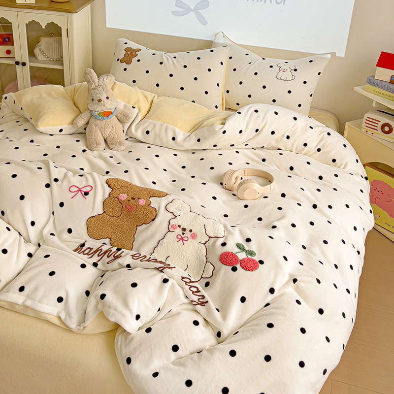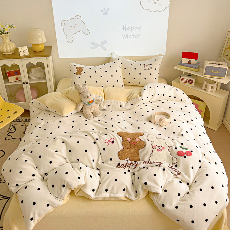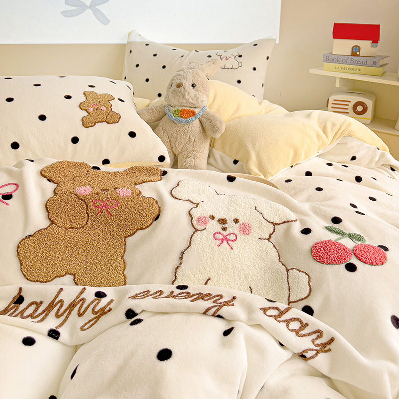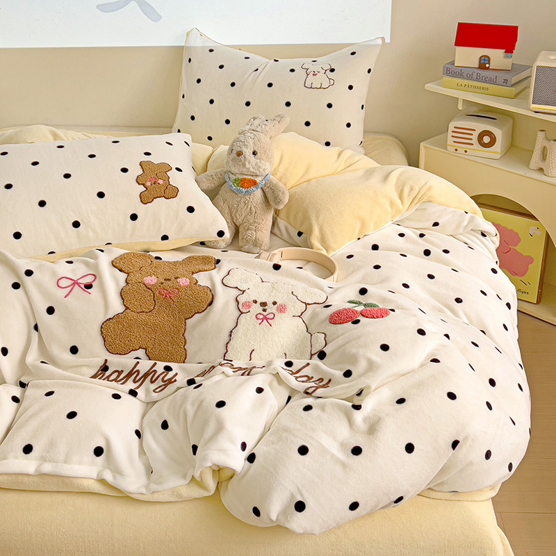 乐童家纺 2024新款高克重牛奶绒小清新印+绣系列四件套 好朋友