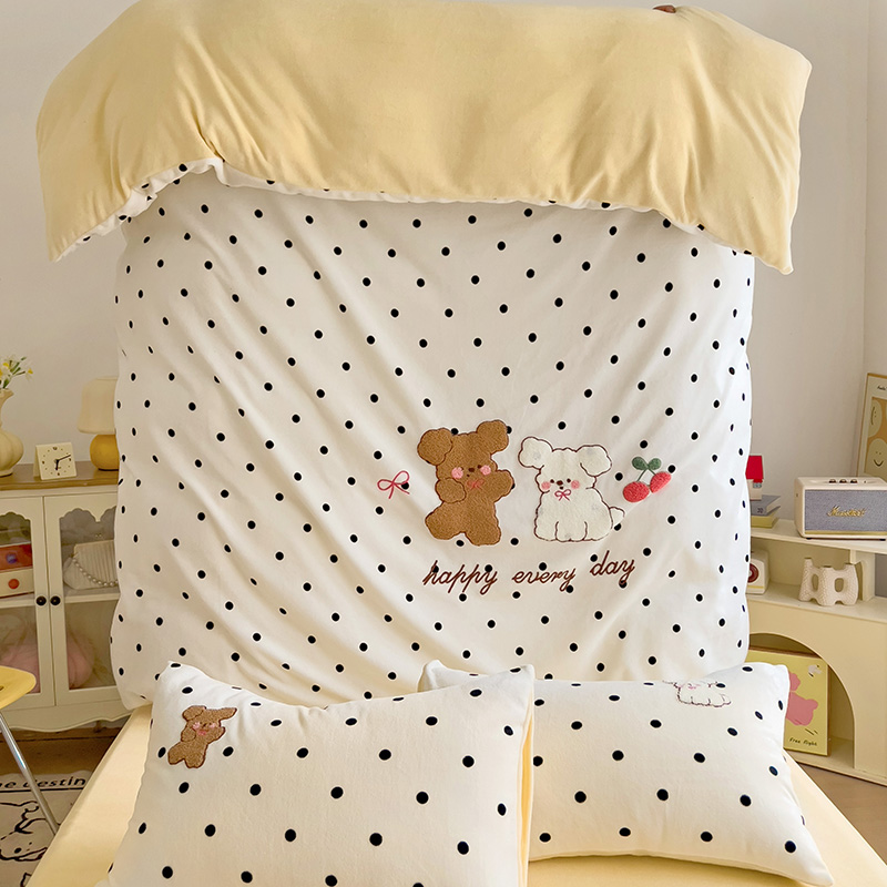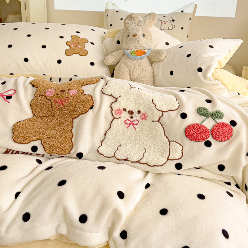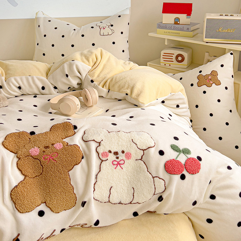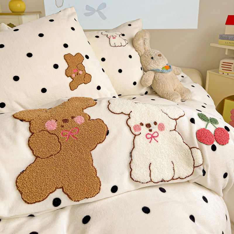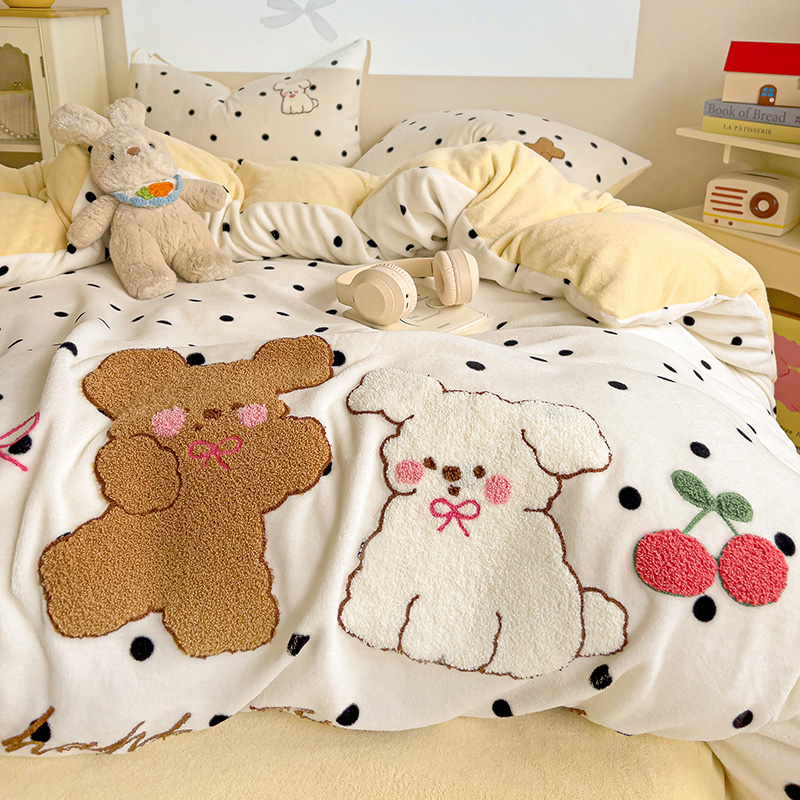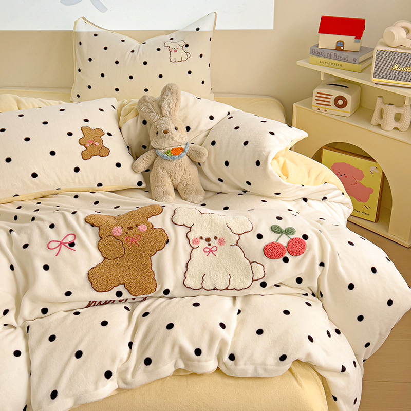 乐童家纺 2024新款高克重牛奶绒小清新印+绣系列四件套 好朋友