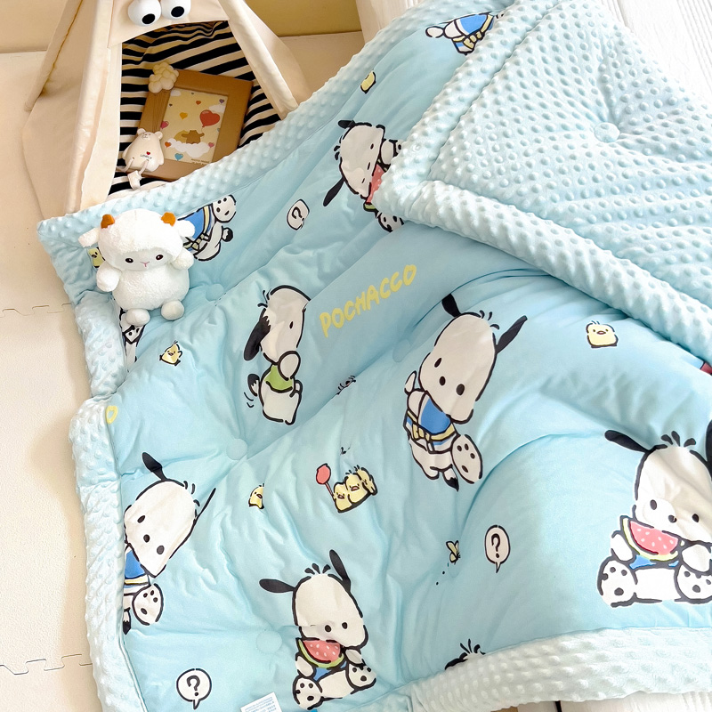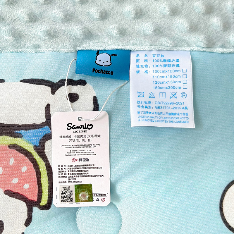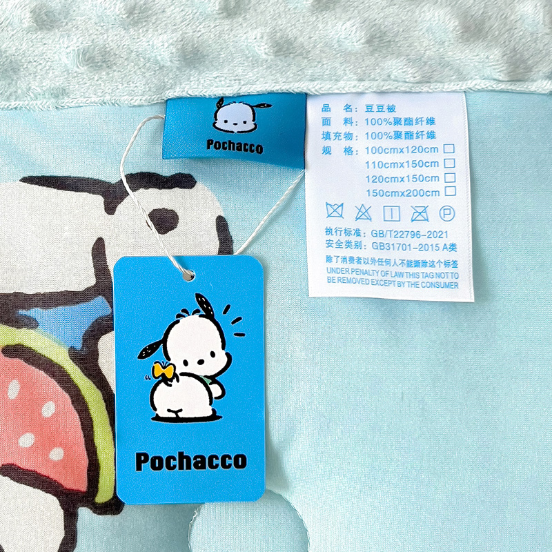 • 91家纺网 家纺一手货源 找家纺 乐秀家纺 2025新款A类三丽鸥针织棉豆豆被 带激光防伪吊牌 西瓜帕恰狗