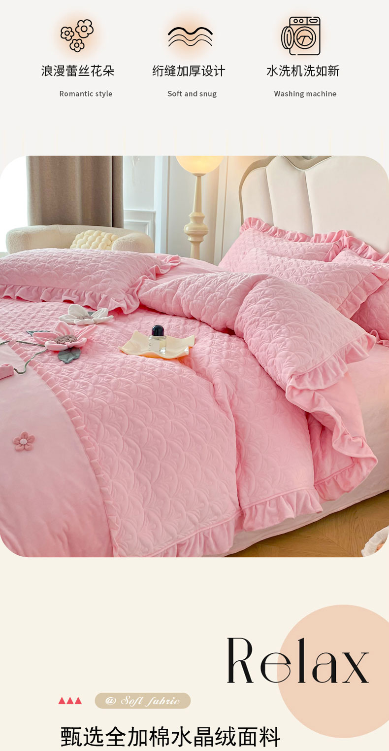 小时代家纺 2024新款加厚宝宝绒全夹棉床盖四件套-冬之恋 冬之恋-粉玉