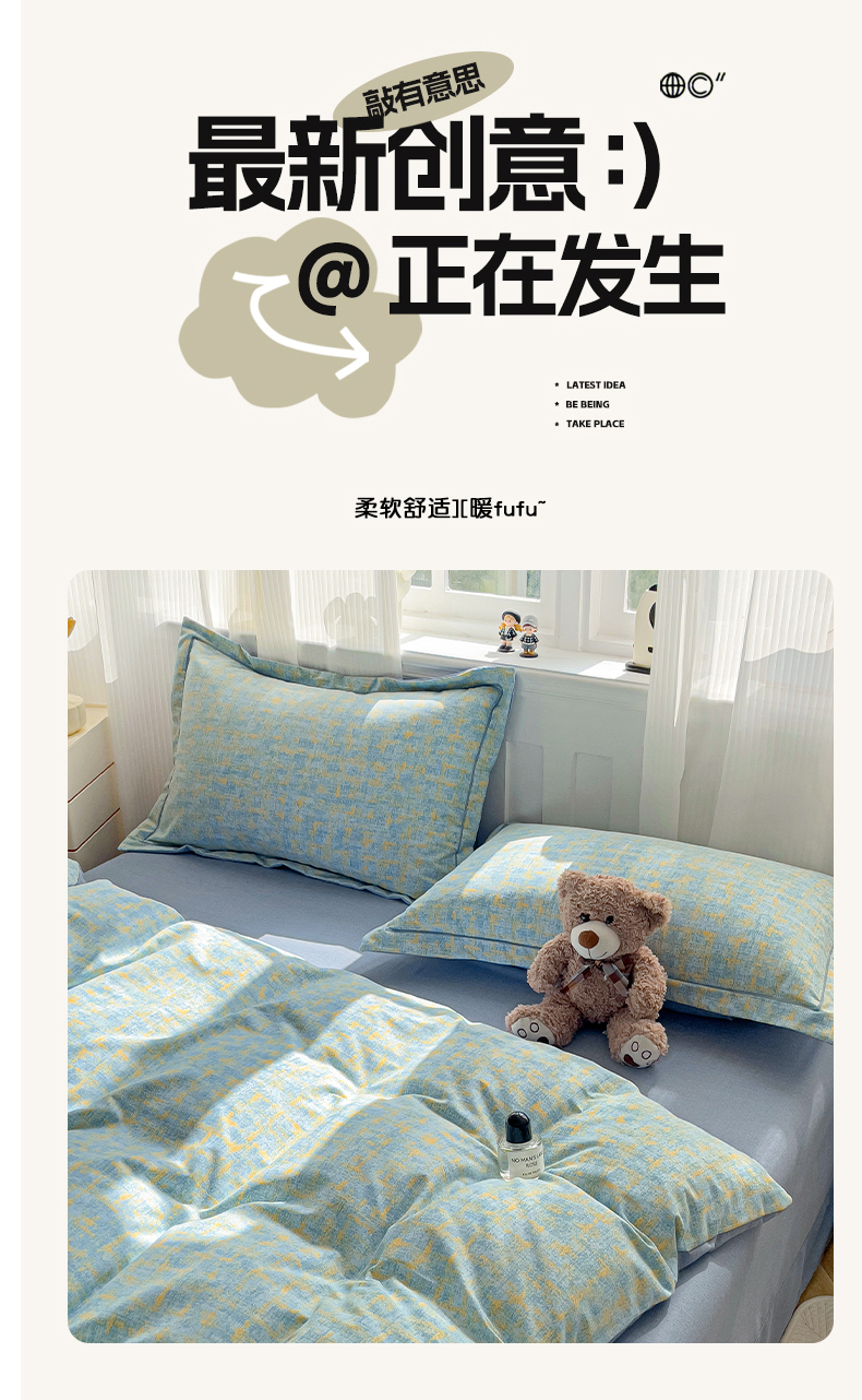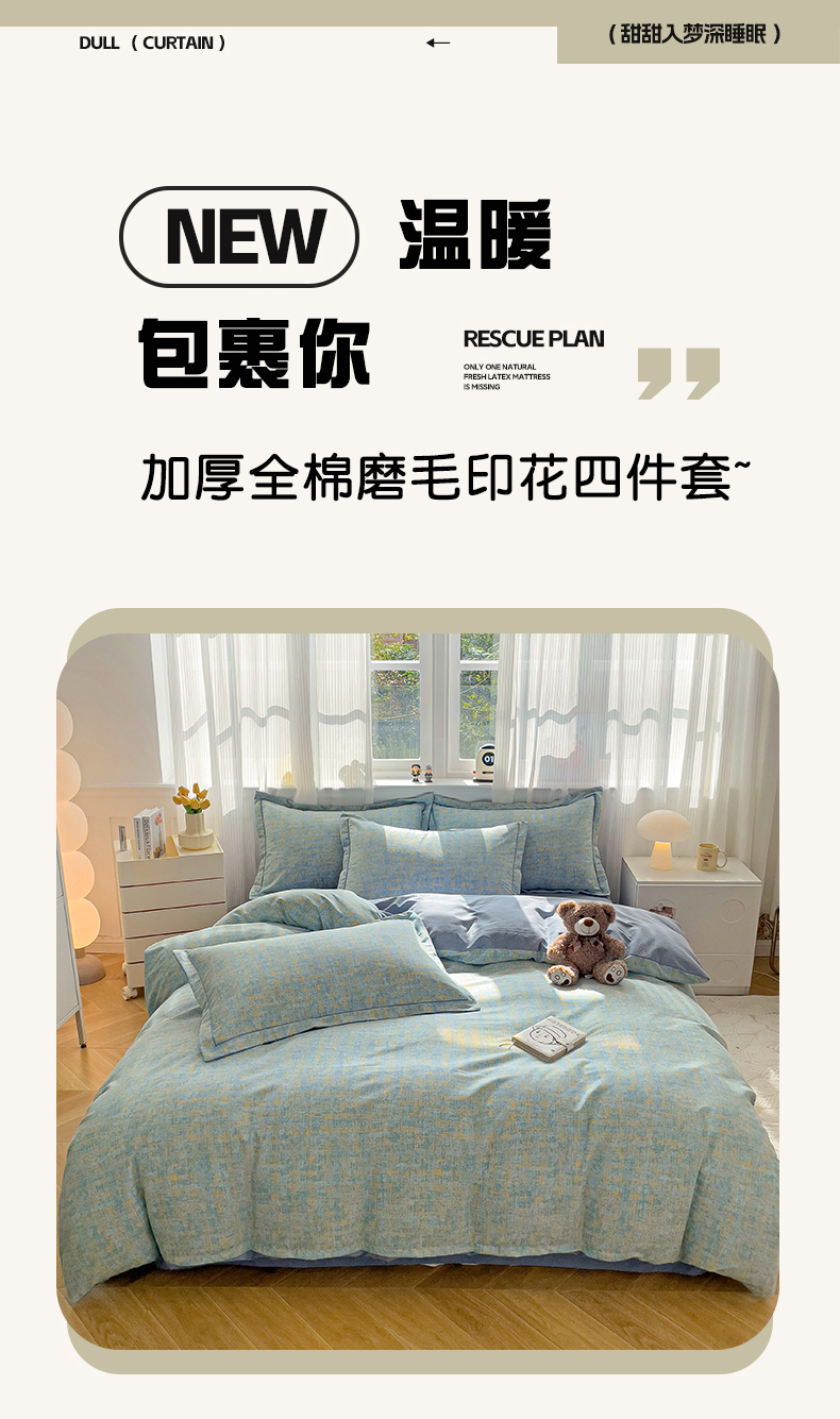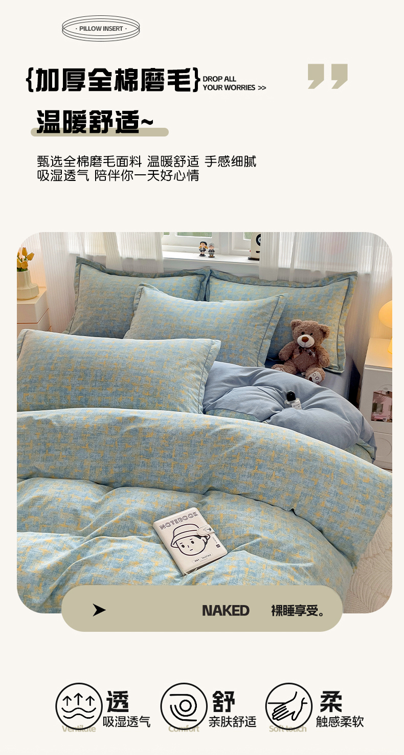 当前位置: 91家纺网 > 商品网购 > 床品套件 > 四件套 > 普通磨毛四件套 > 暖芯优选 2025新款直播爆款加厚全棉磨毛四件套喷气印花纯棉(一字绣工艺款)学生三件套10月上新 米莱-兰