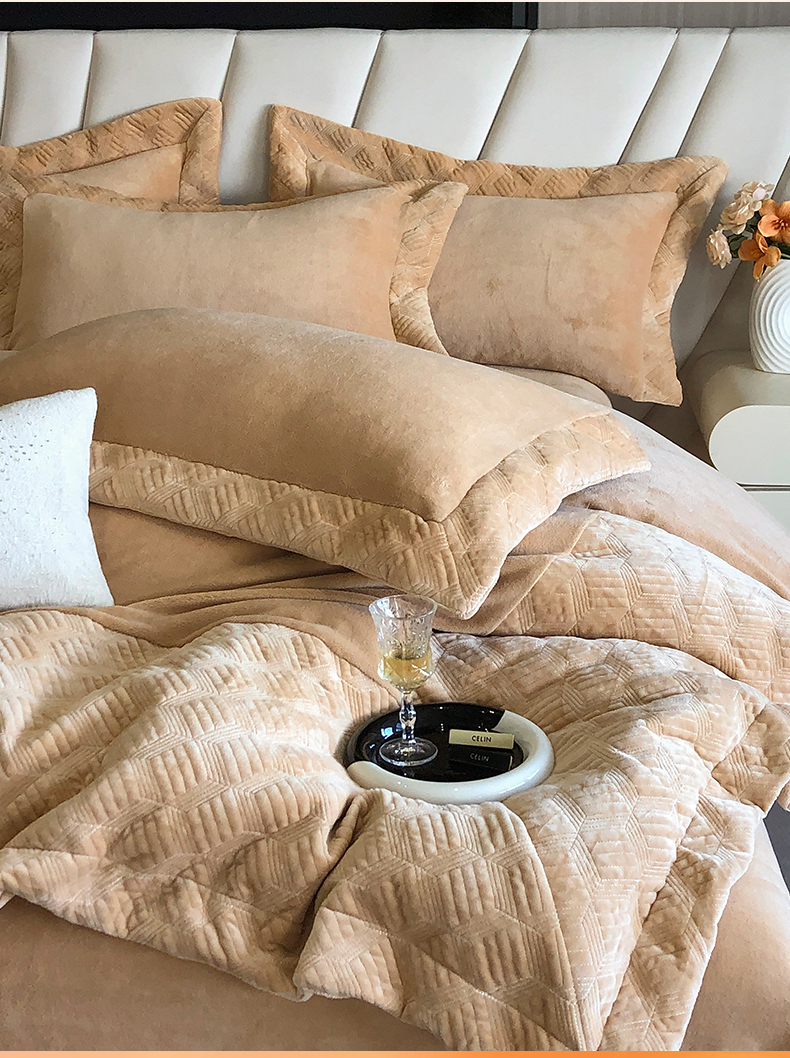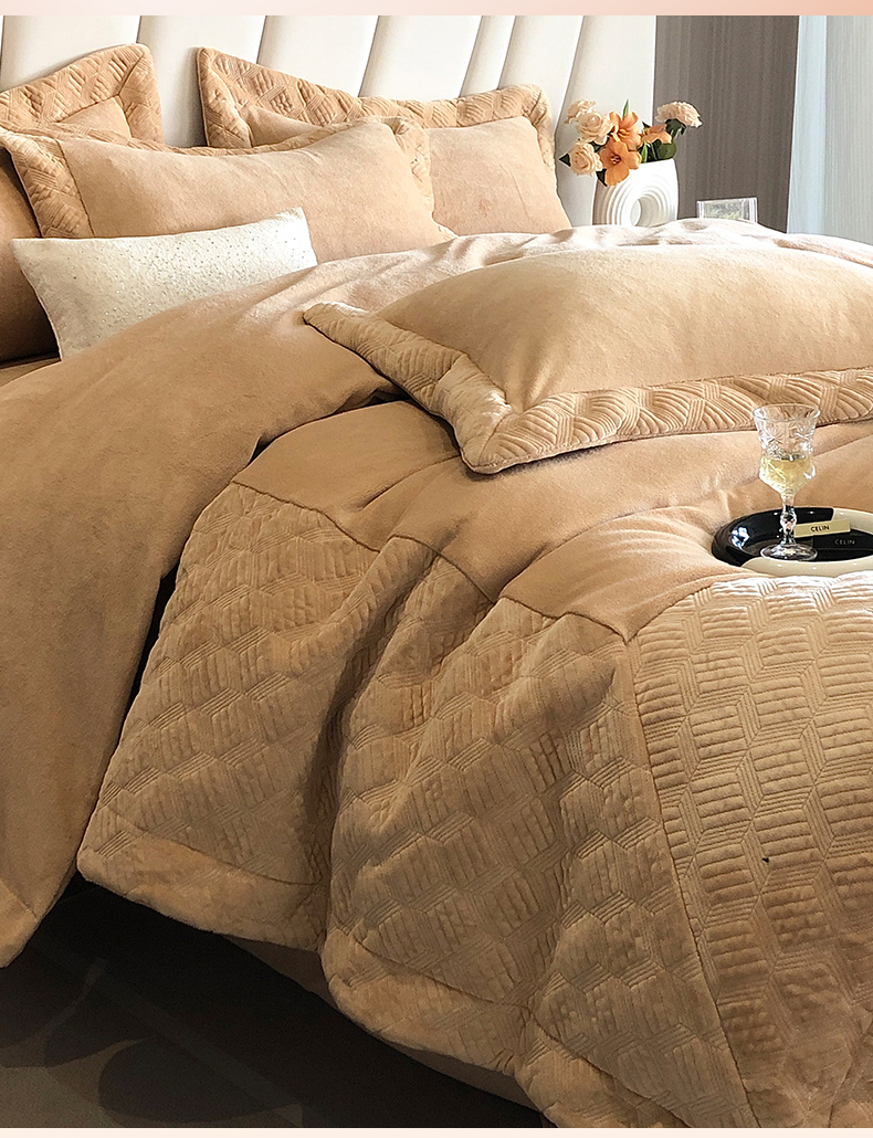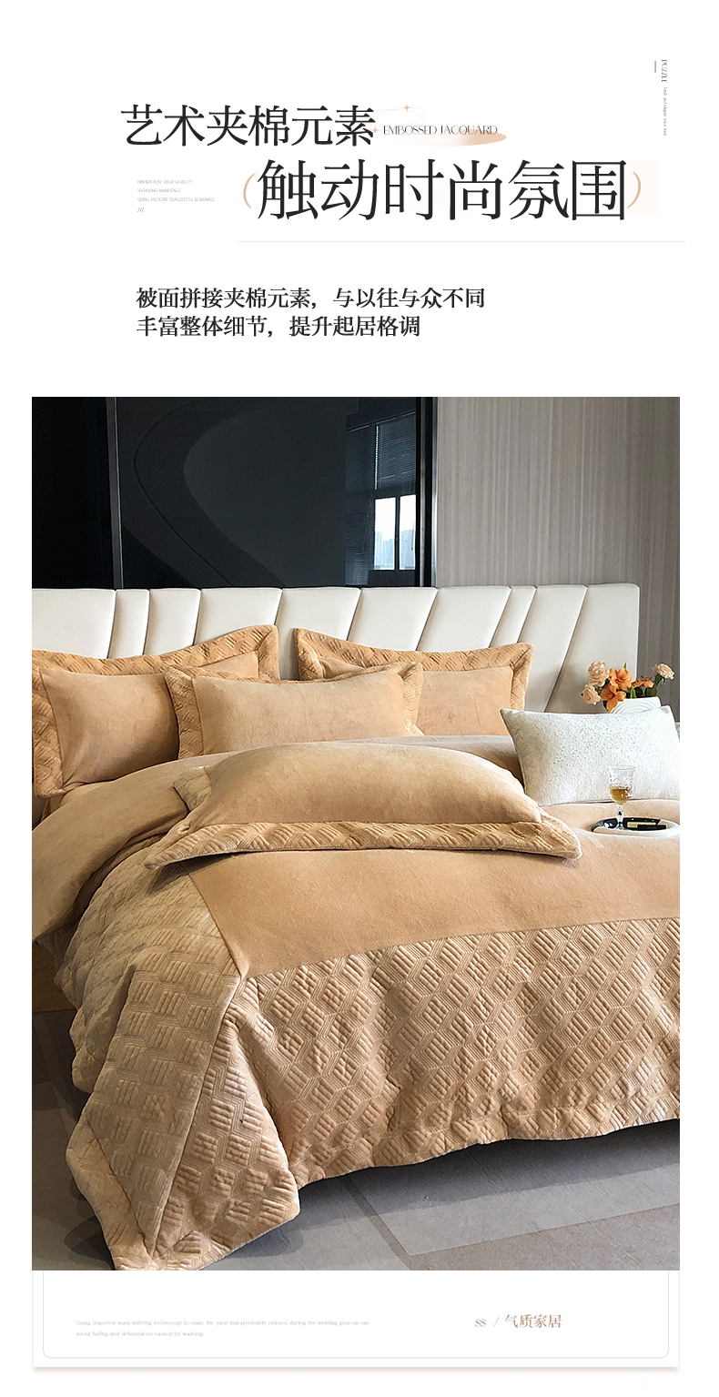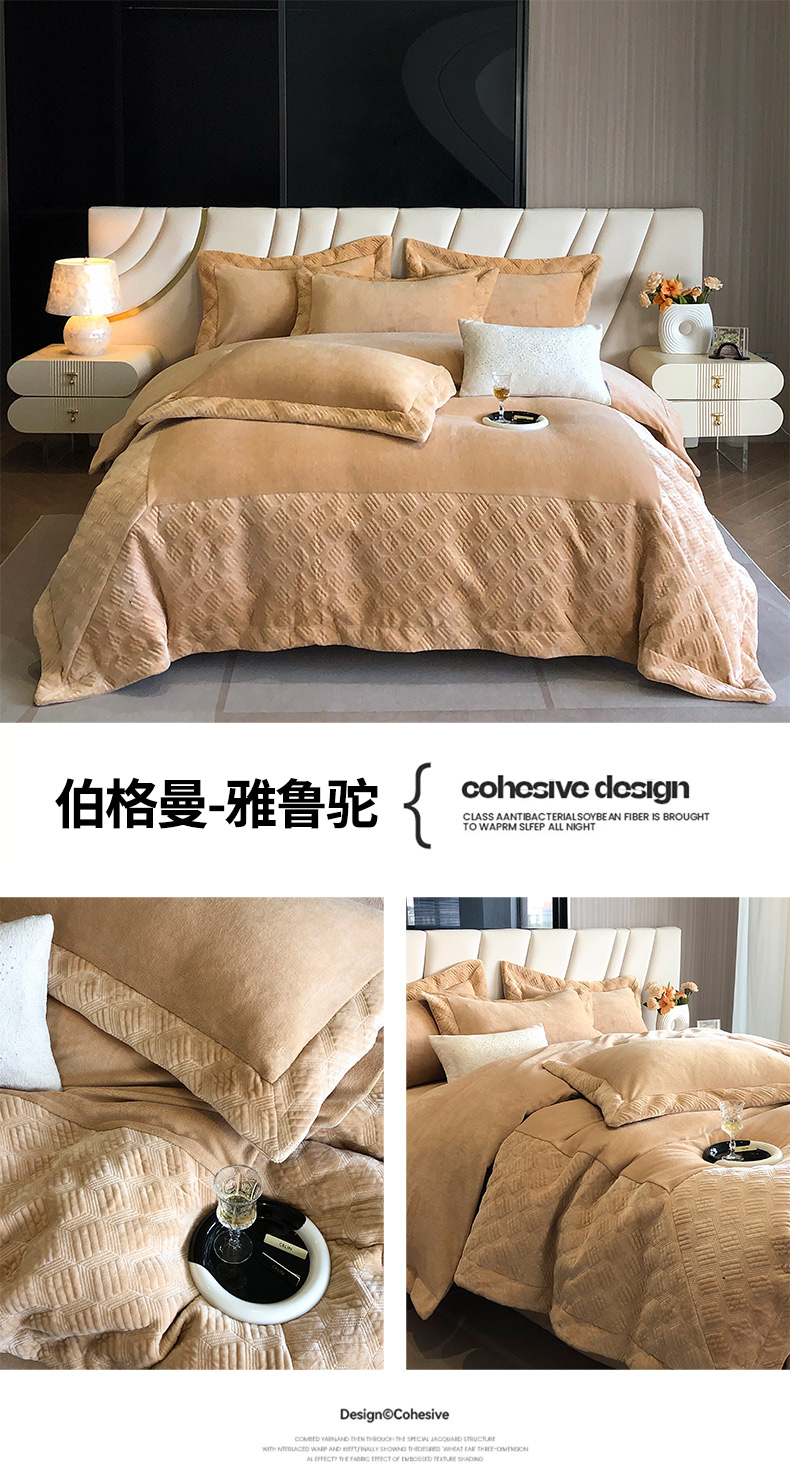 商品名称:保罗圣迪奥 2024新款绗绣大拼角牛奶绒四件套-伯格曼 伯格曼-雅鲁驼