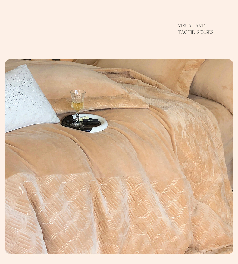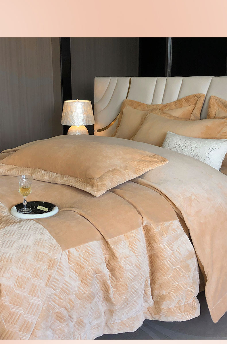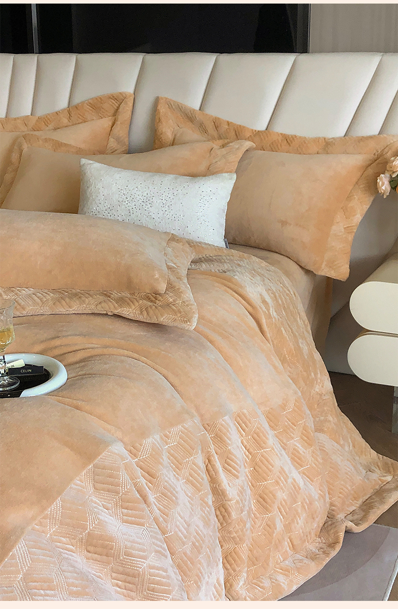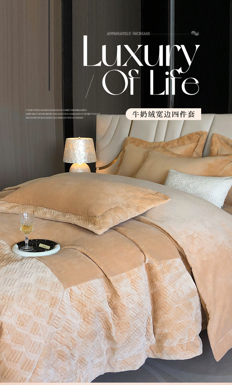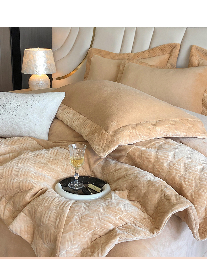 商品名称:保罗圣迪奥 2024新款绗绣大拼角牛奶绒四件套-伯格曼 伯格曼-雅鲁驼
