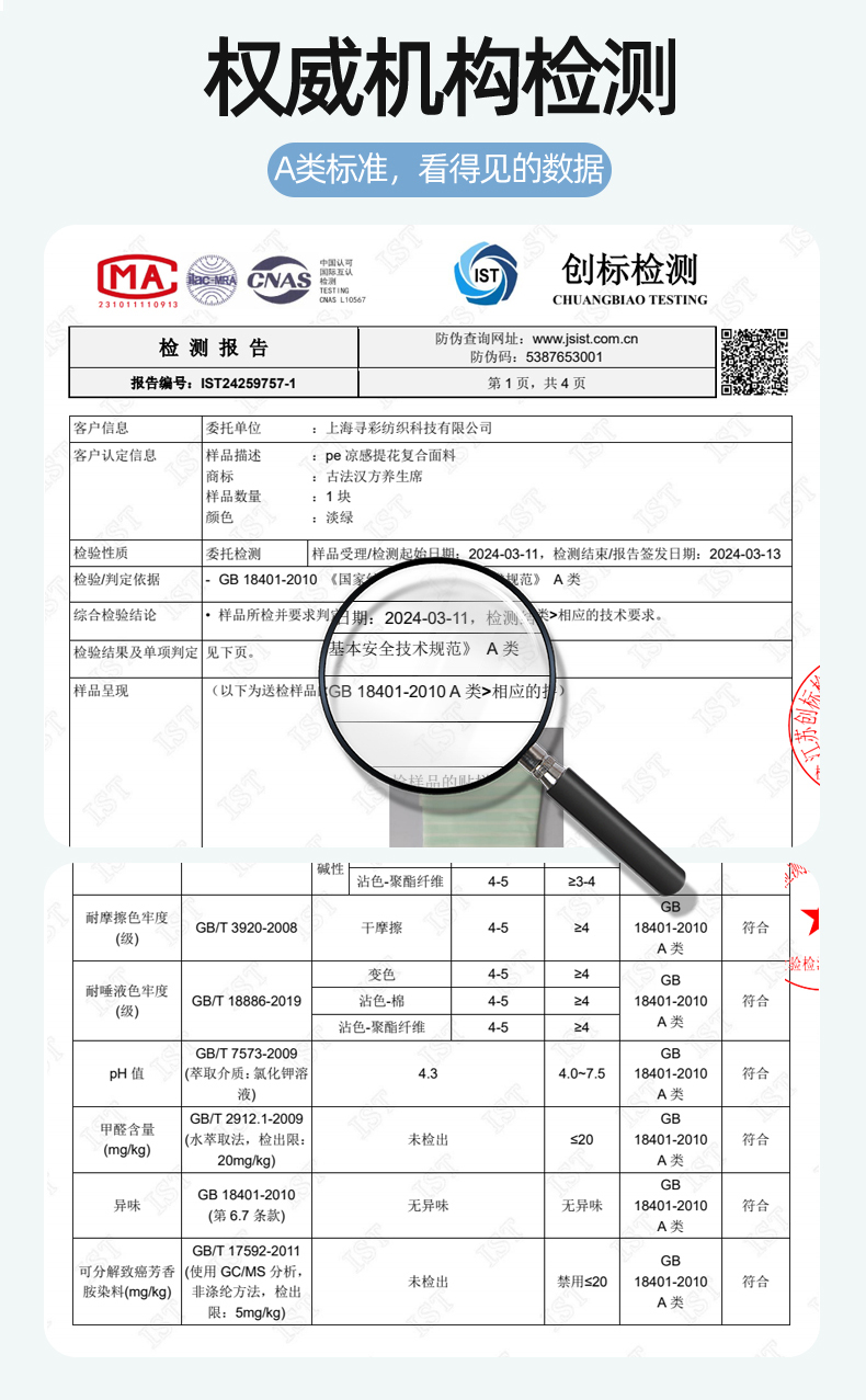 4、通州区市场监管局川姜分局友情提醒:近期针对抗静电,无静电,抗菌防螨,及有关舒适度,百分比的举报高发。为不影响商品正常销售,请各商家高度重视,自检自查及时整改,谢谢配合!