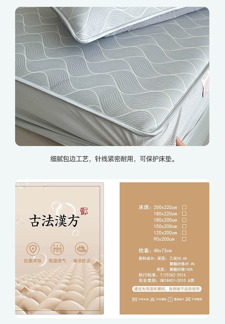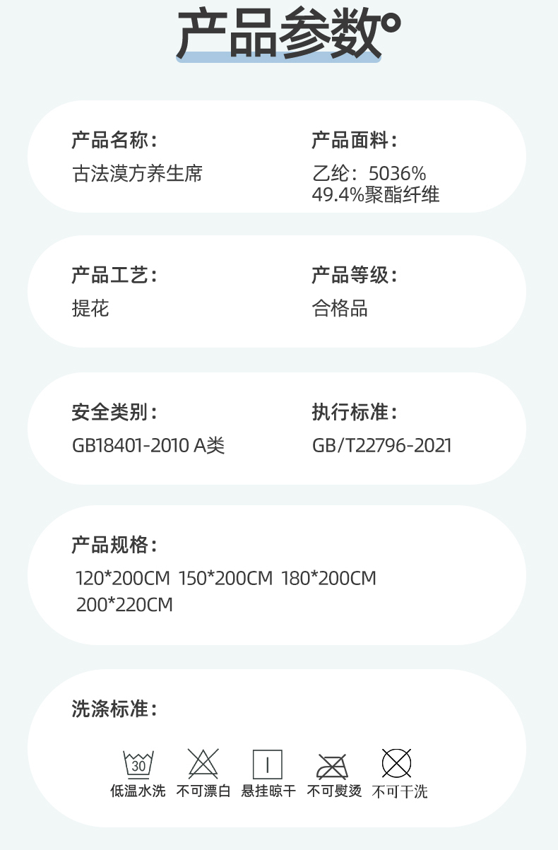 商品名称:(总)蓝巢家纺 2024新款A类提花古法漠方养生席三件套