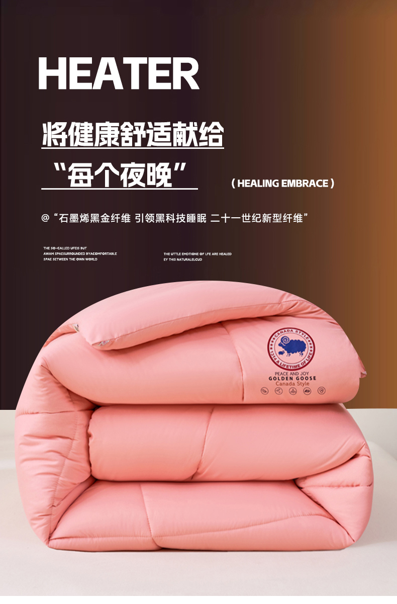 • 91家纺网 家纺一手货源 找家纺 招财狼家纺 2024新款速暖石墨烯冬被被子被芯 粉色