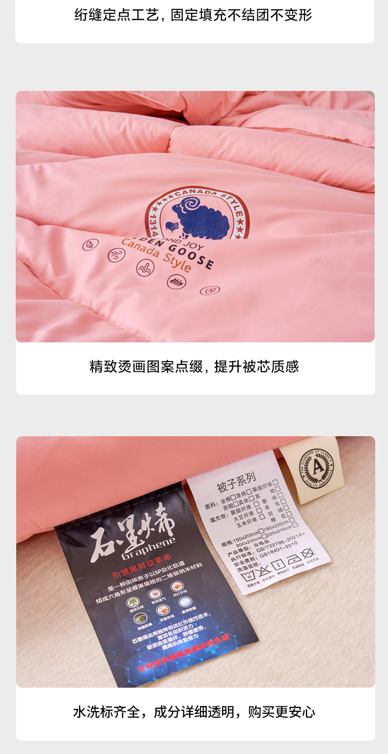当前位置: 91家纺网 > 商品网购 > 被子 > 冬被 > 招财狼家纺 2024新款速暖石墨烯冬被被子被芯 粉色