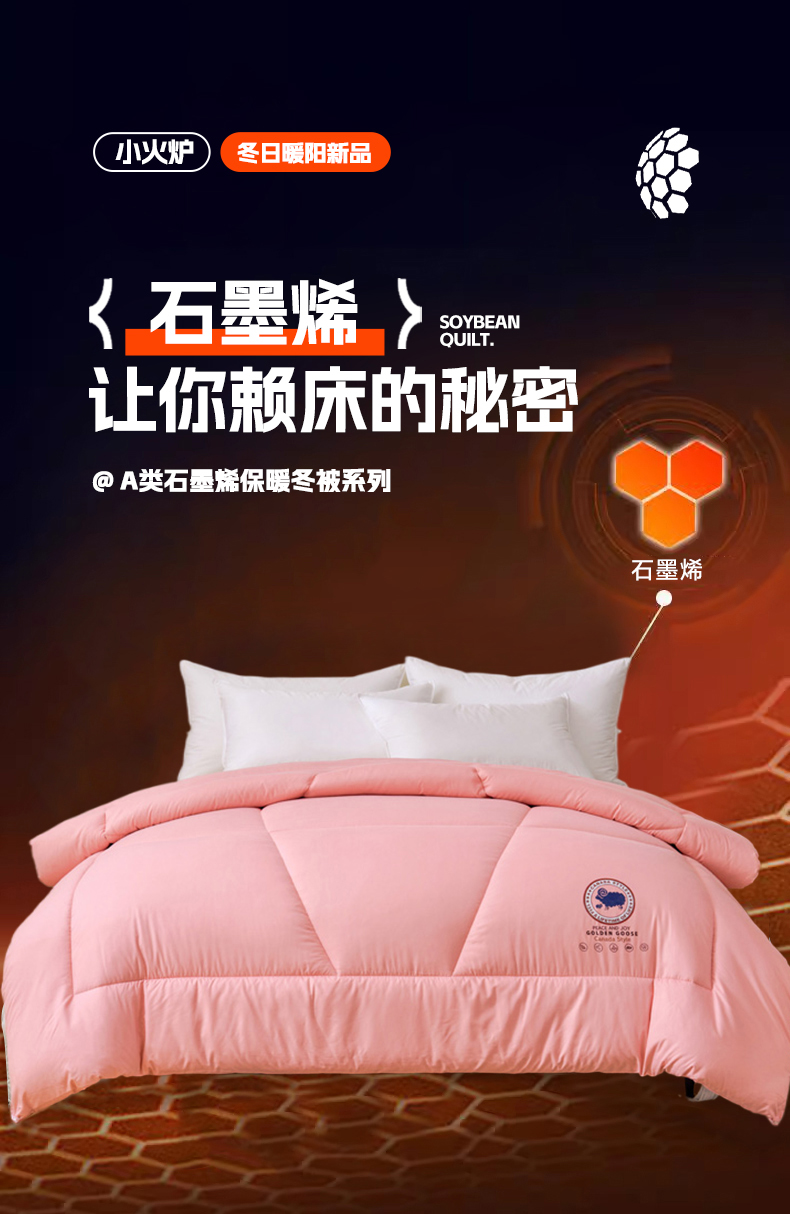 招财狼家纺 2024新款速暖石墨烯冬被被子被芯 粉色