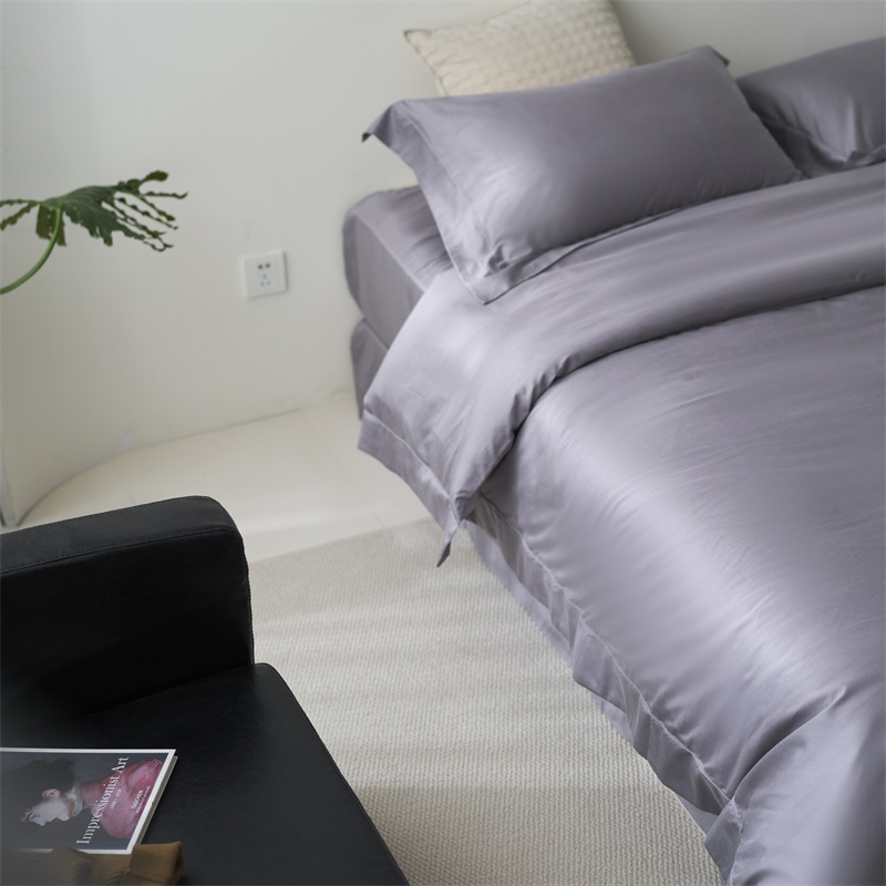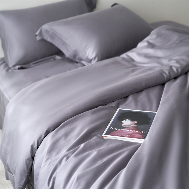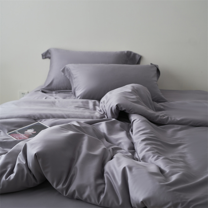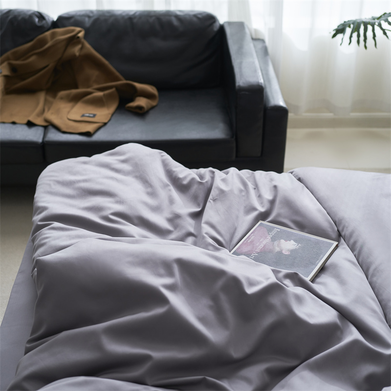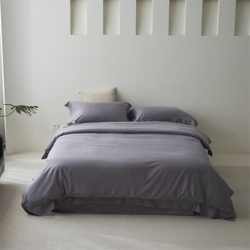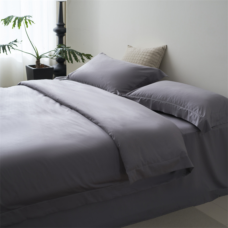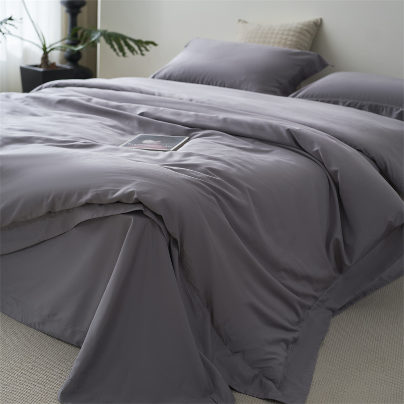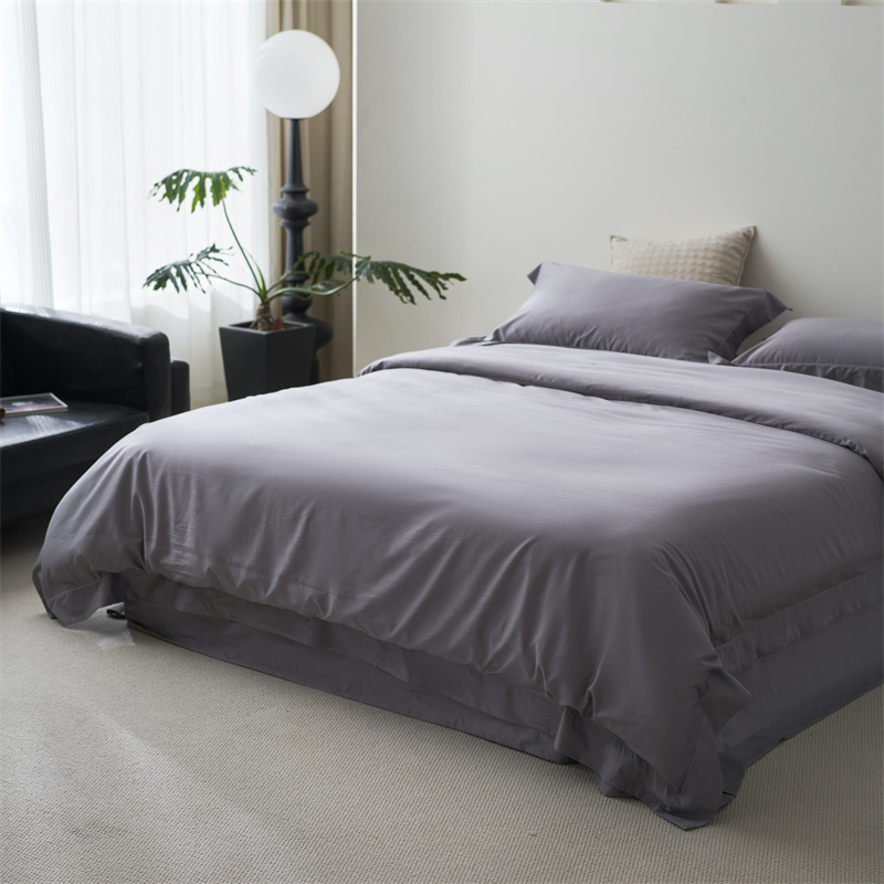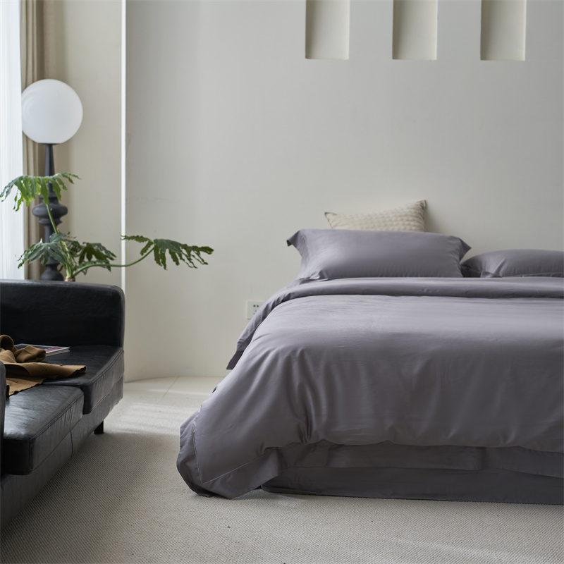 商品名称:阿那亚 2024四季款新品东帝兴绫罗缎(超细旦天丝+新疆长绒棉)轻磨毛纯色简约四件套(控价:498/518) 深灰