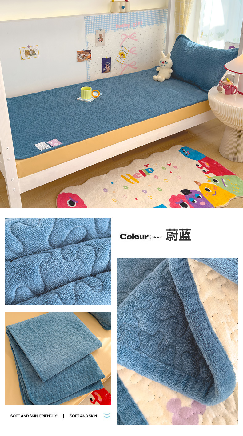 商品名称:赫梵茜 2024新款90✖200学生牛奶绒床盖蔚蓝