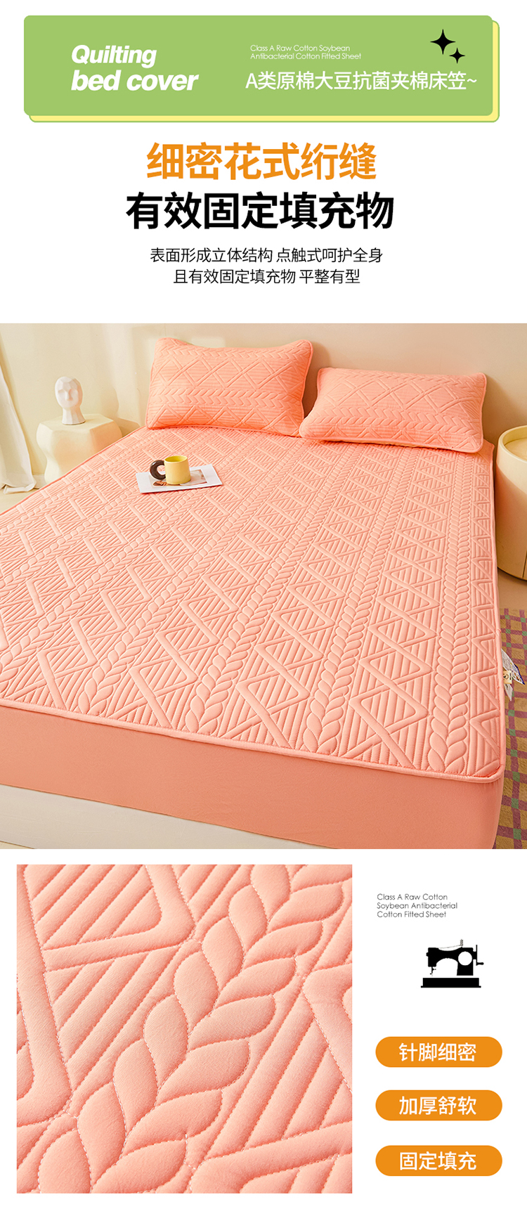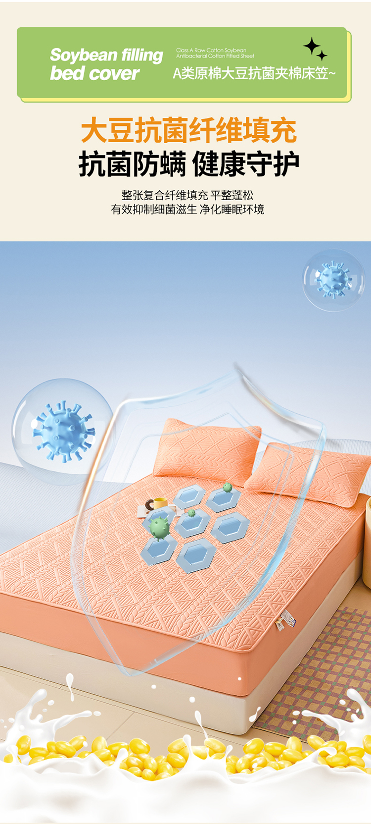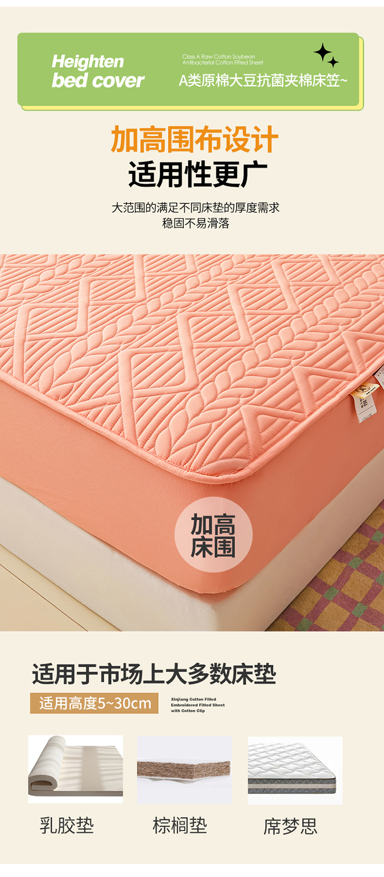 2024新款A类原棉大豆夹棉床笠 香妃玉