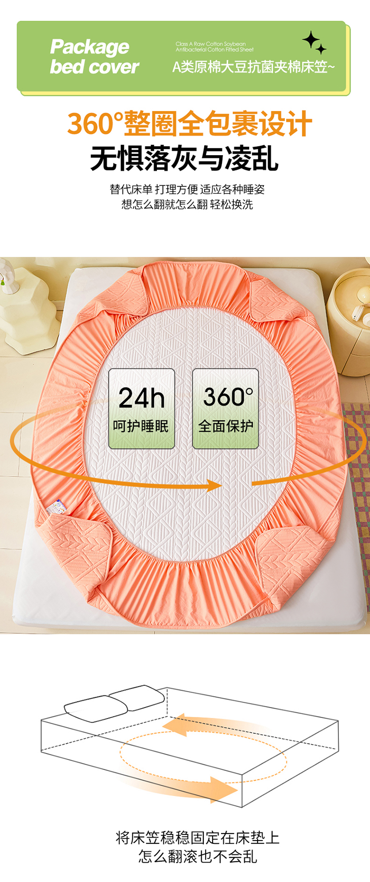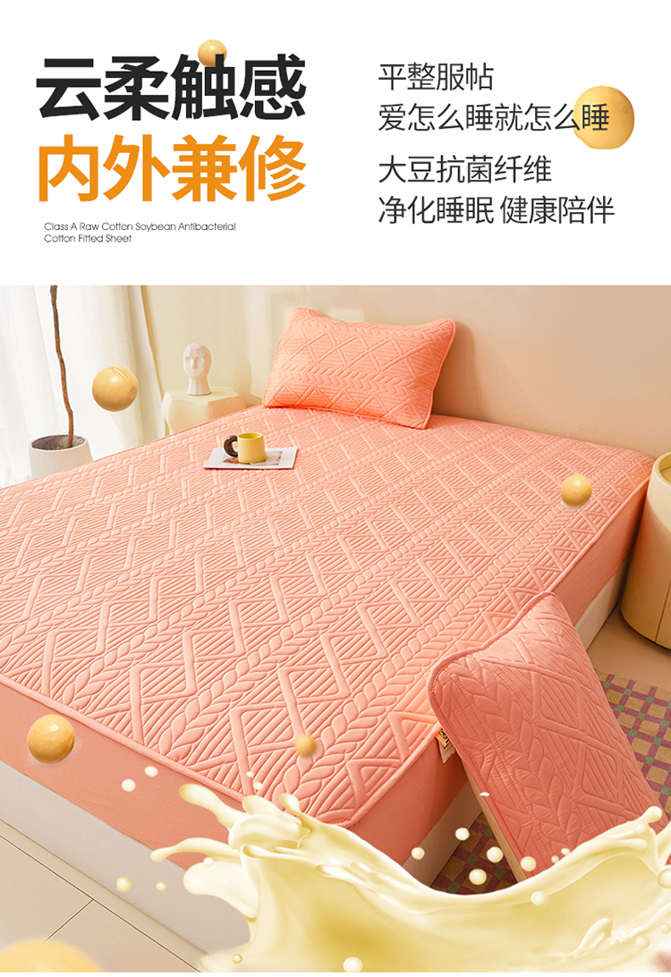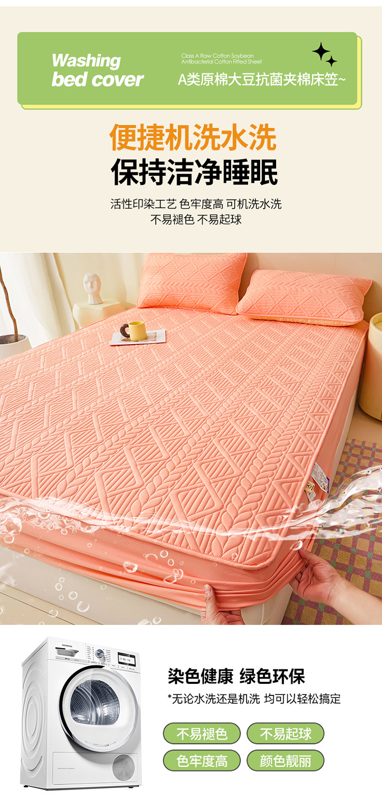 2024新款A类原棉大豆夹棉床笠 香妃玉