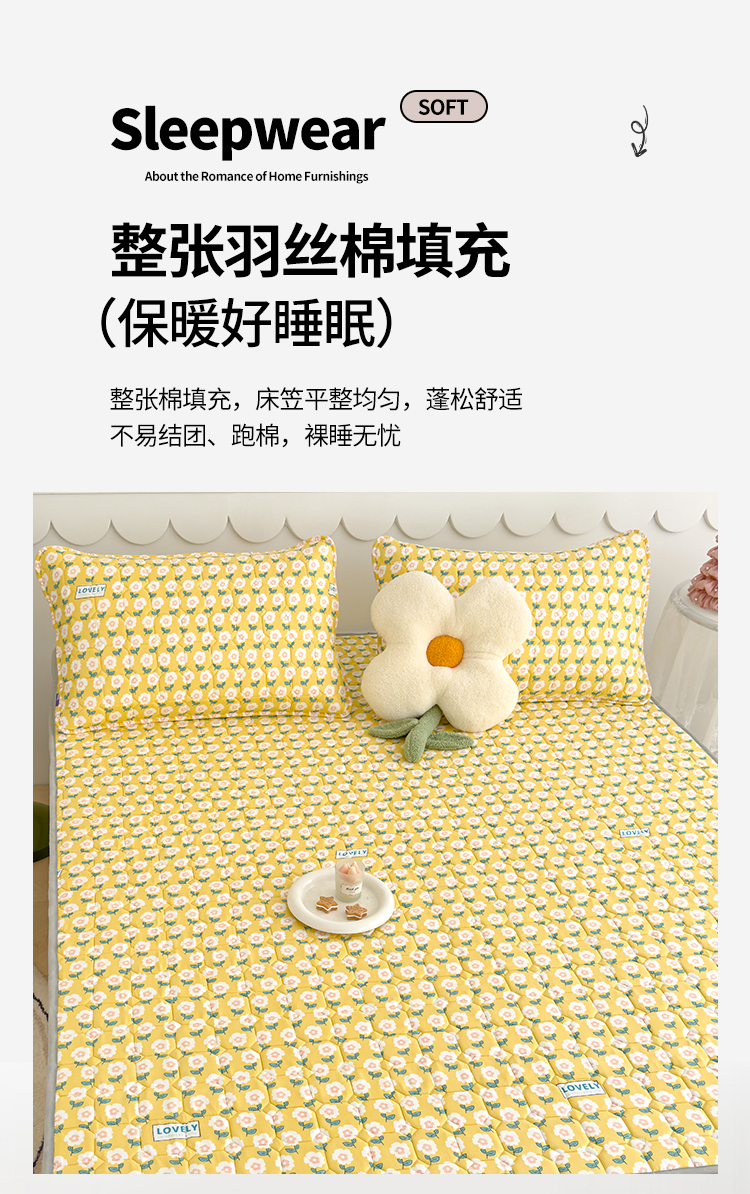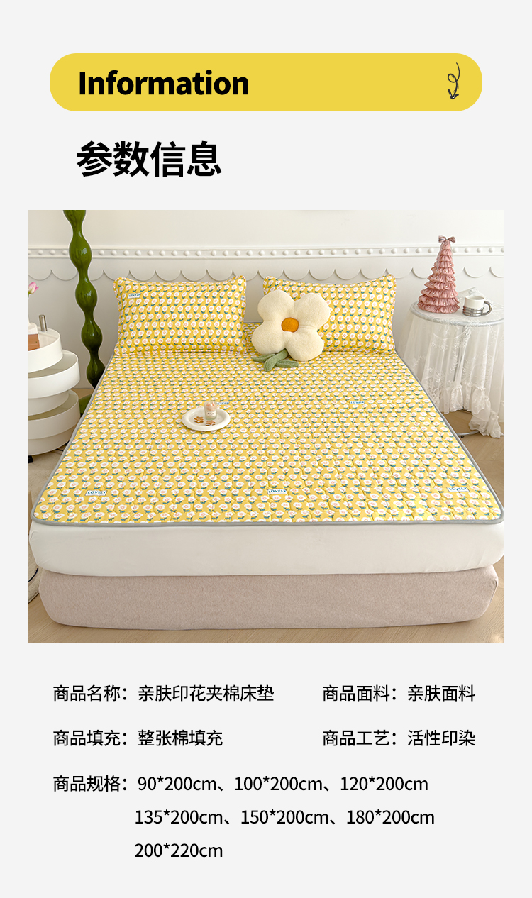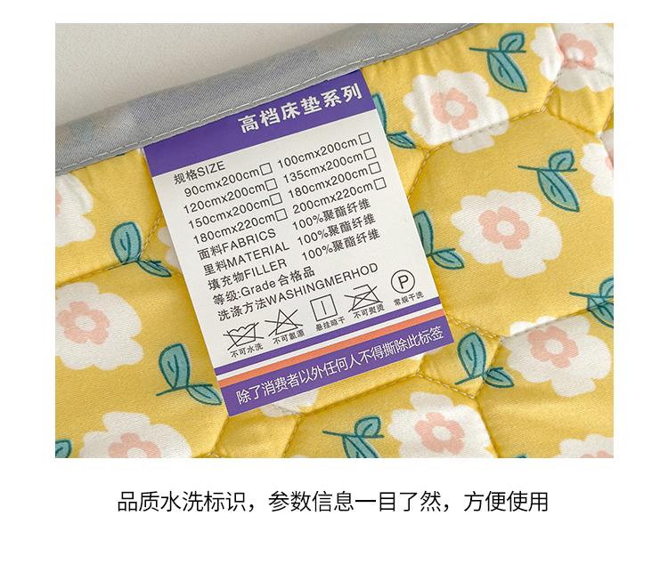 商品名称:2024新款亲肤水洗薄款软床垫防滑床护垫床褥学生垫子 加厚款 陌上花开-黄