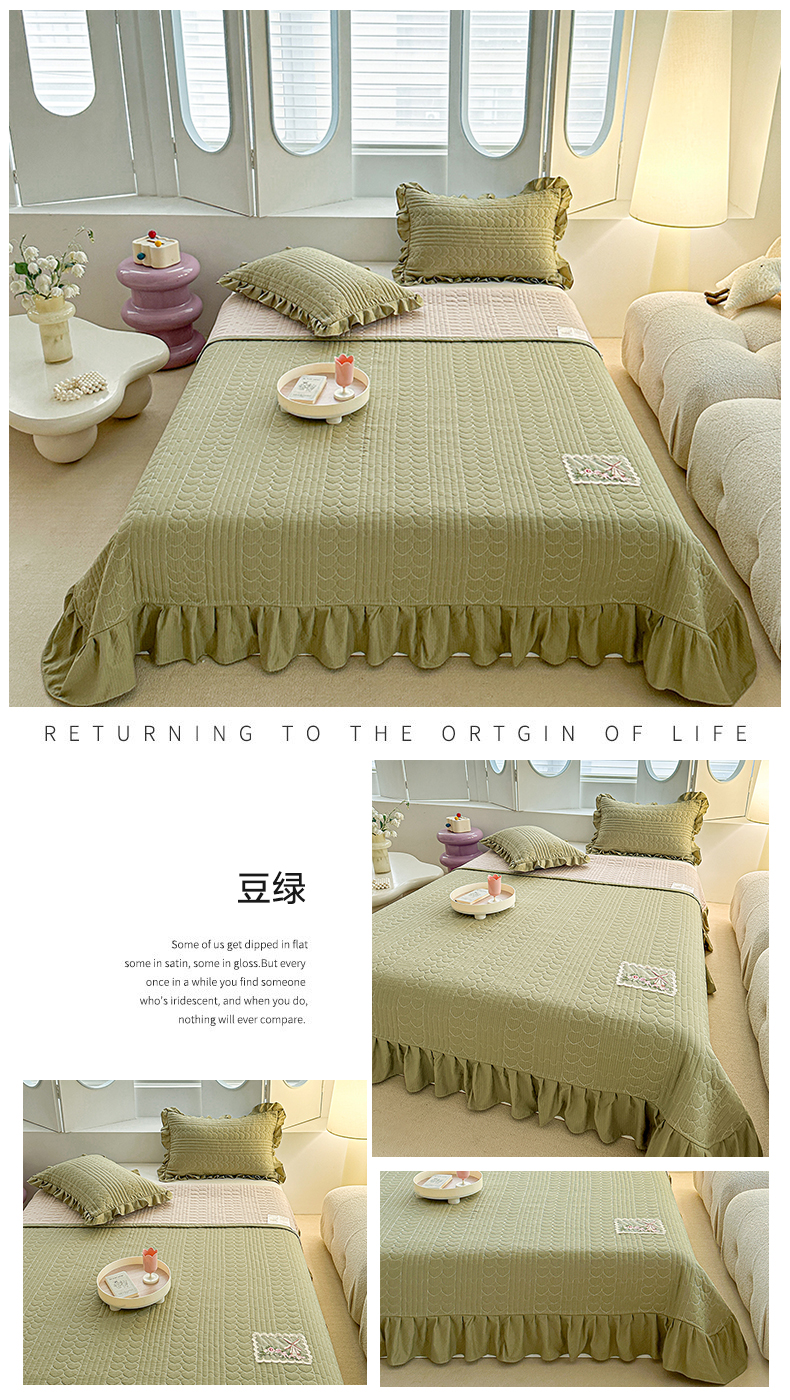 商品名称:源舜家纺 2025新款云感皱皱纱韩版纯色床盖三件套 豆绿