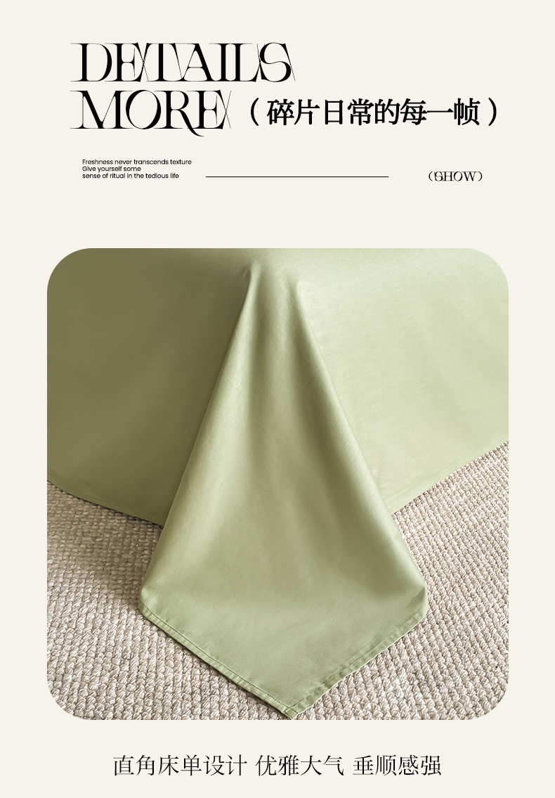 (总)三朵家纺 2026新款ins风全棉纯色双拼水洗棉四件套极简风系列,风青月白,焦糖曲奇,蓝韵雾纱,流光奶绿,抹茶奶黄,浅蓝芝士,香芋奶昔,烟墨灰,云纱可可