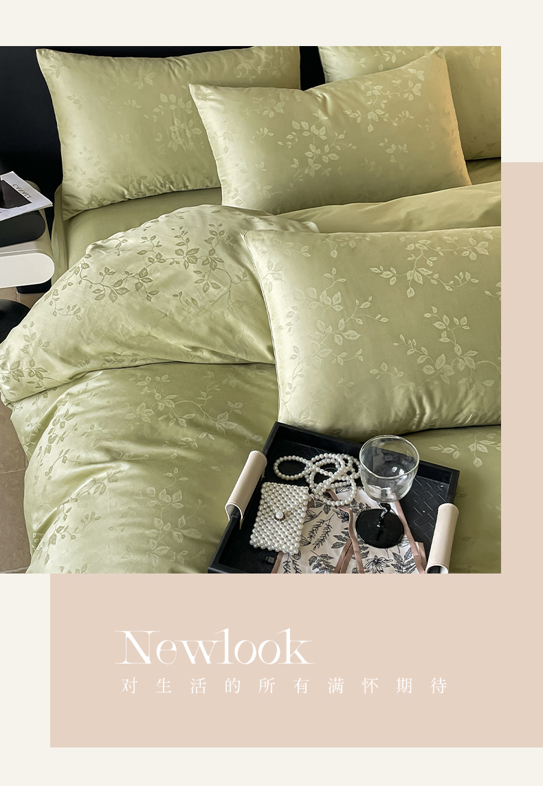 (总)三朵 2023新款提花混搭缎格DG系列四件套,翡翠绿,火焰橙,金棕色,可可杏,可可棕,栗子咖,奶白+咖色,奶白+浅绿,奶白+紫薇,浅紫薇,深迪蓝,相思灰