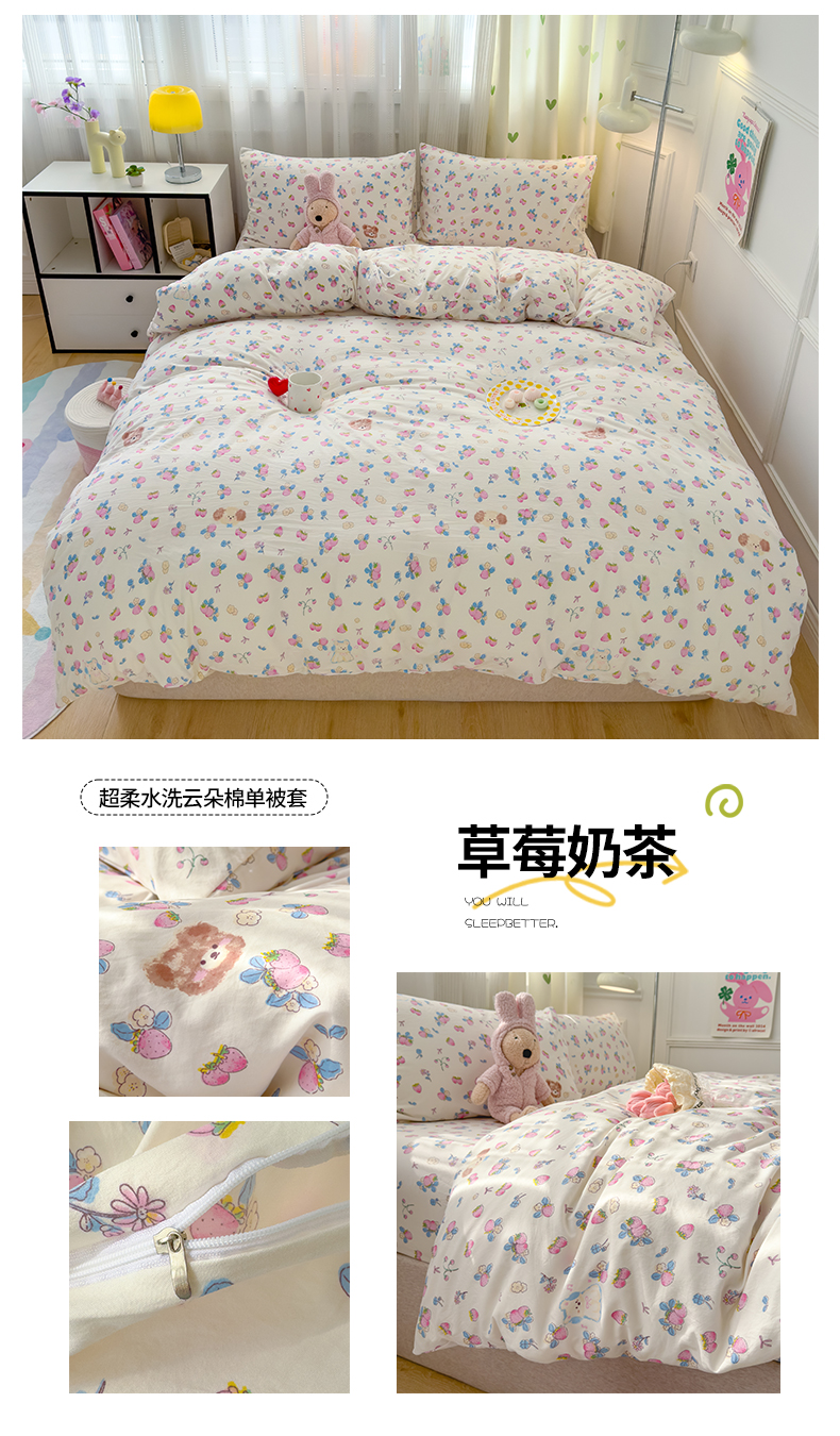 商品名称:宏源家纺 2024新款A类高克重超柔水洗云朵棉单被套 草莓奶茶