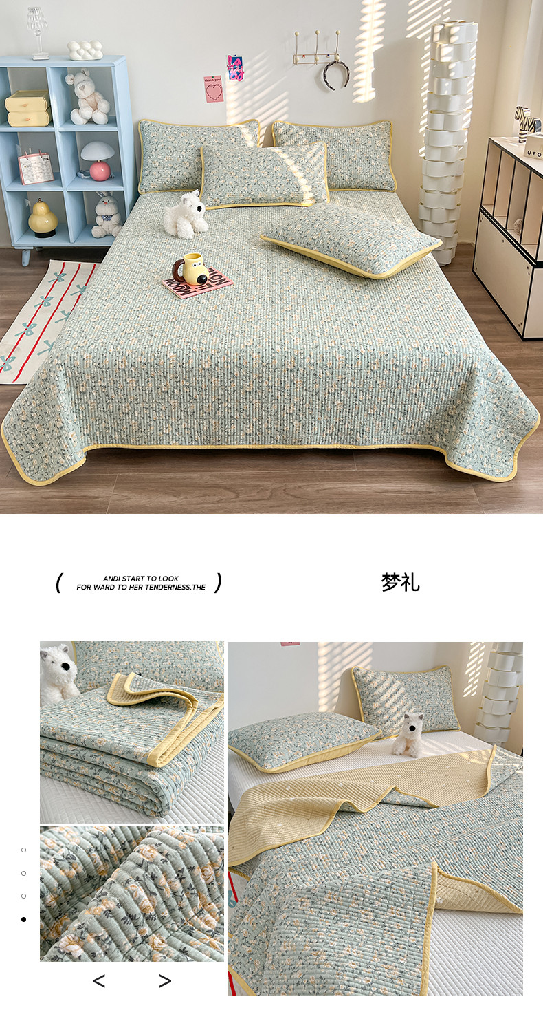 • 91家纺网 家纺一手货源 找家纺 茉夕家纺 2025新款跑量款双面纯棉印花水洗床盖 梦礼