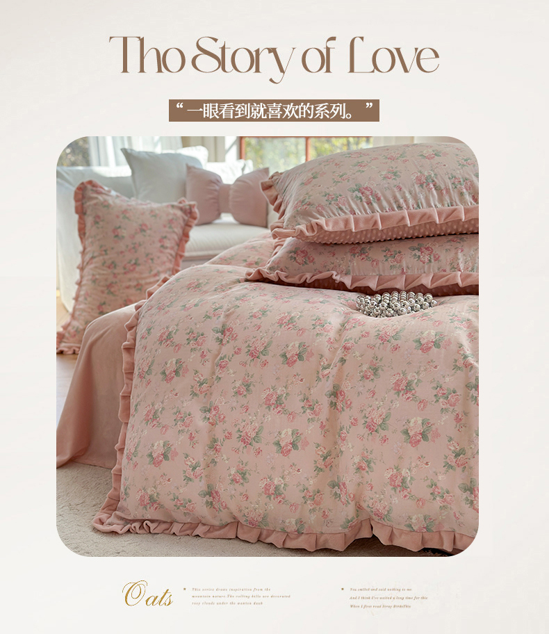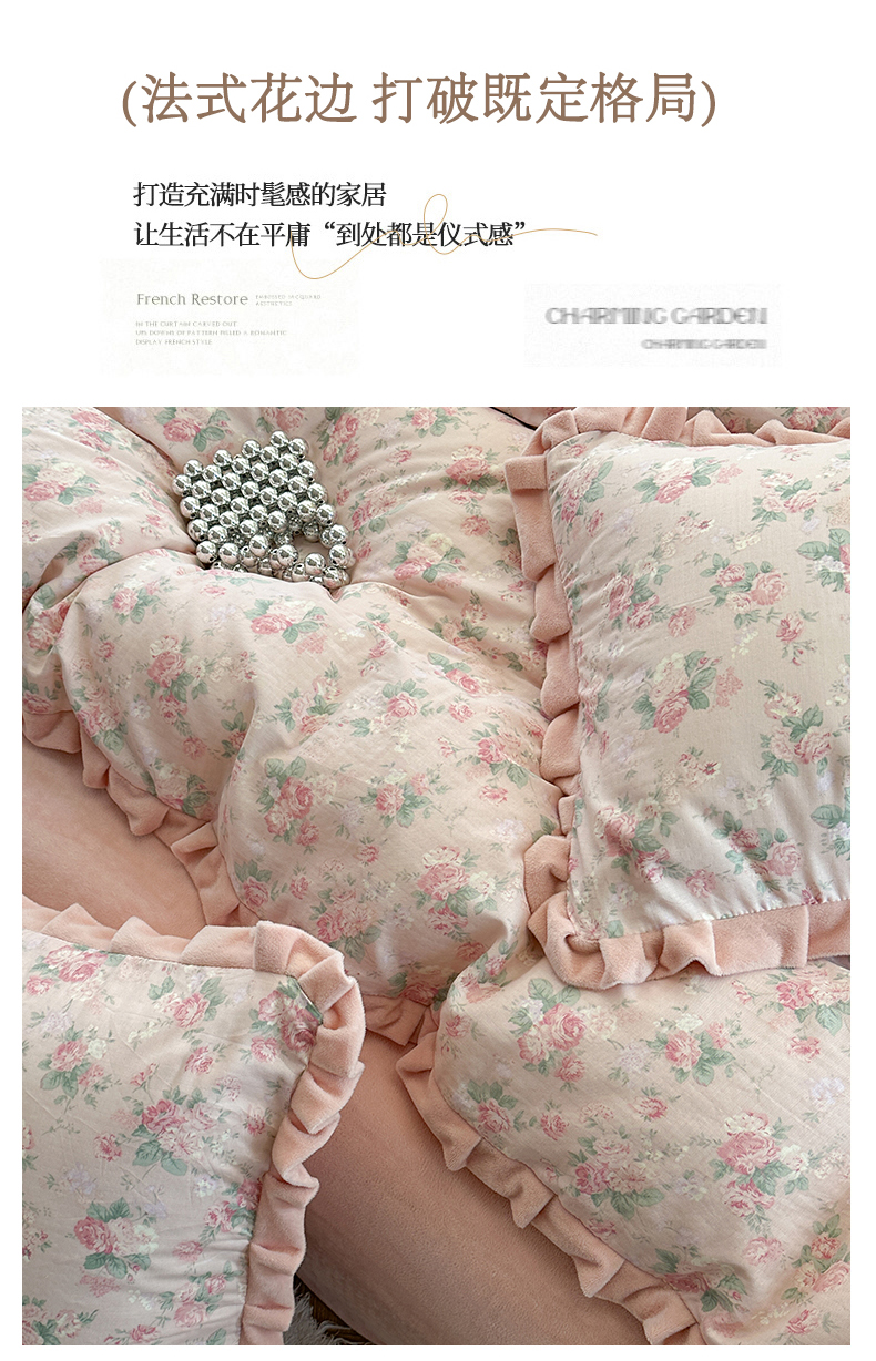 当前位置: 91家纺网 > 商品网购 > 床品套件 > 四件套 > 其它四件套 > 麦伦家居 2025新款多功能床品全棉A类有氧双层纱+豆豆绒四件套荷叶边系列 蒂芙尼-粉