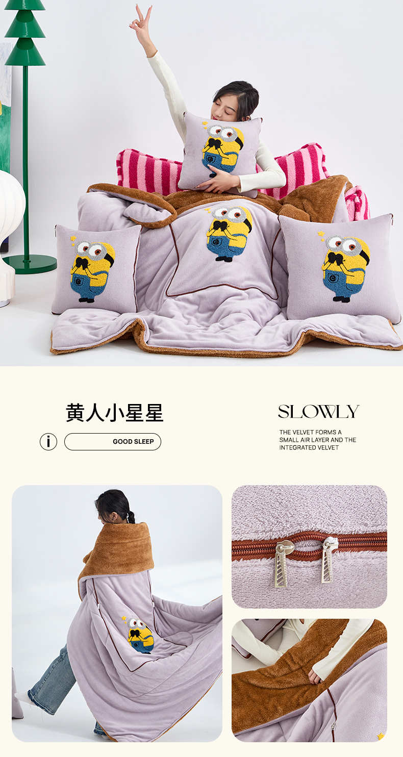 商品名称:宝马家纺(原梦童画) 2025新款小黄人抱枕被加厚抱枕被 黄人小星星