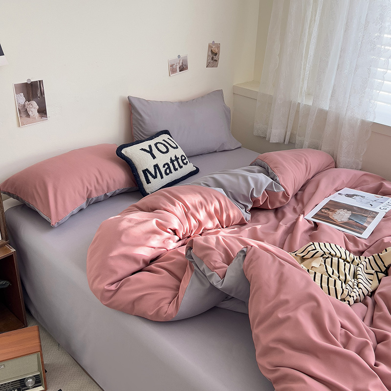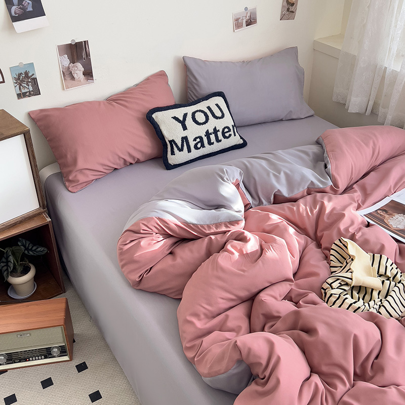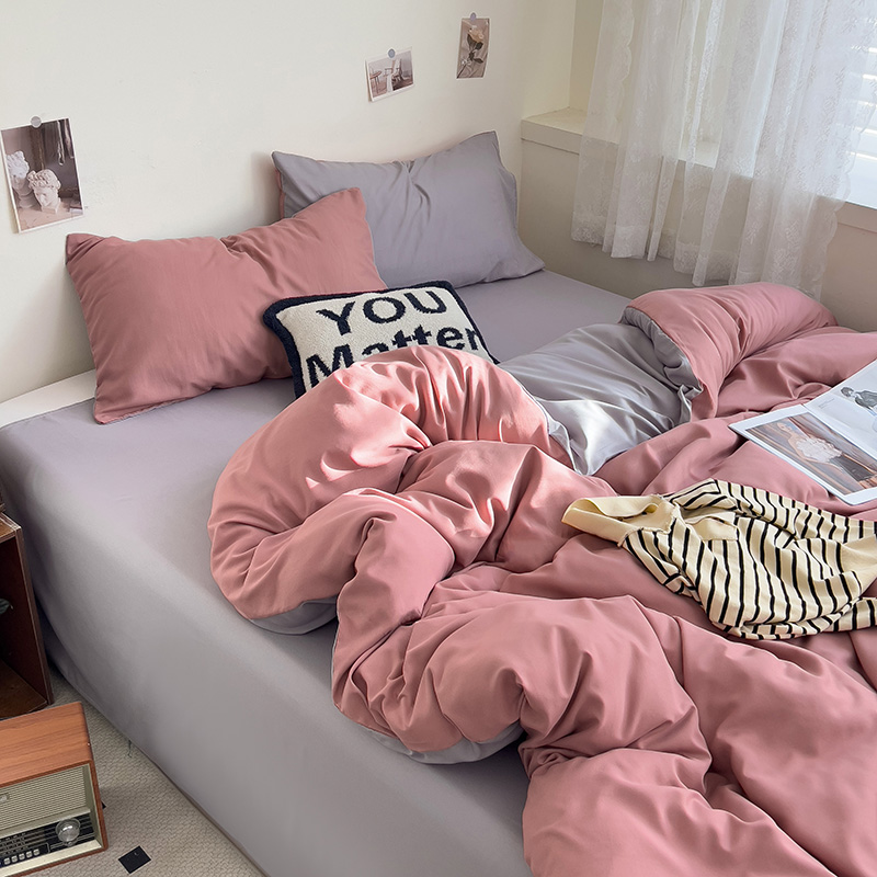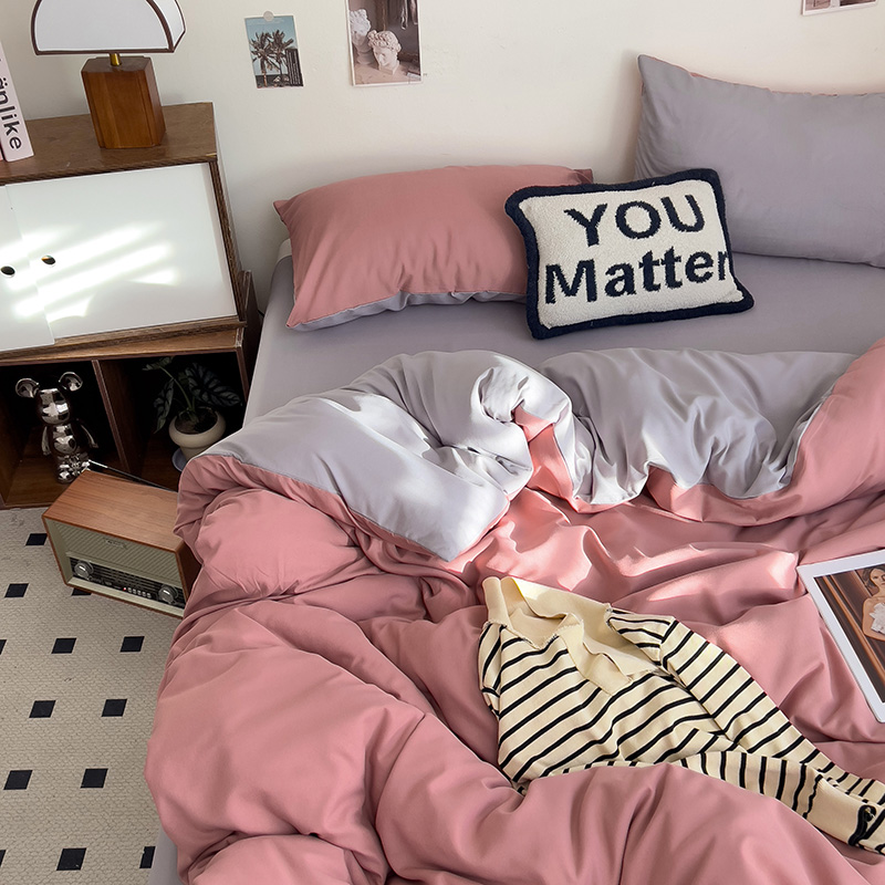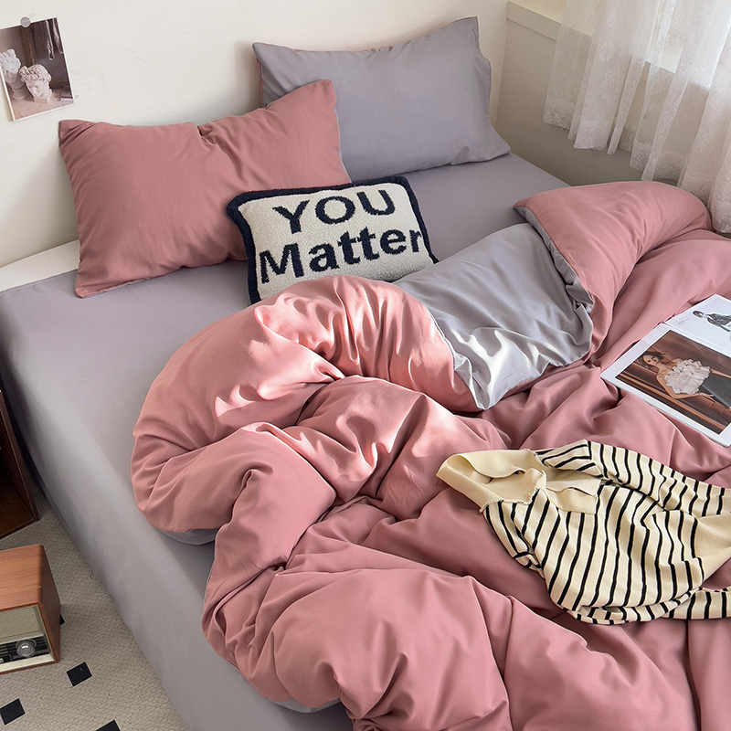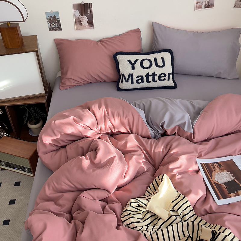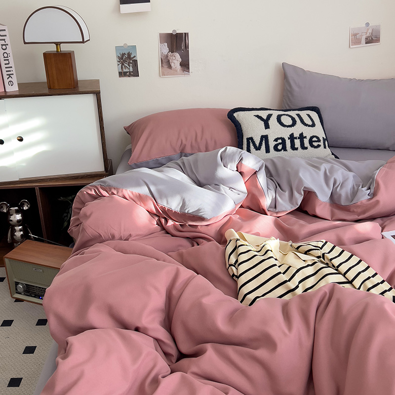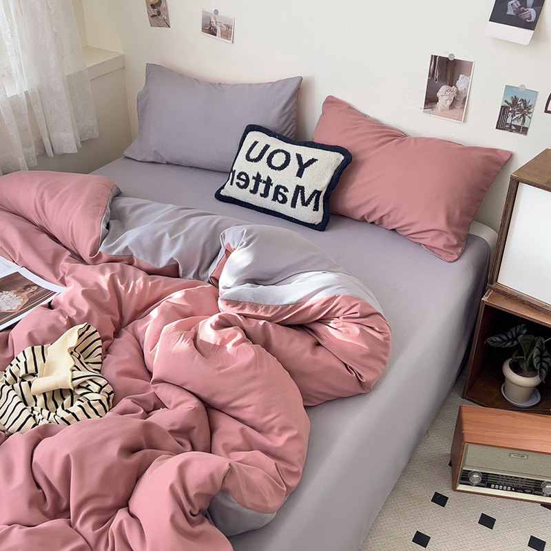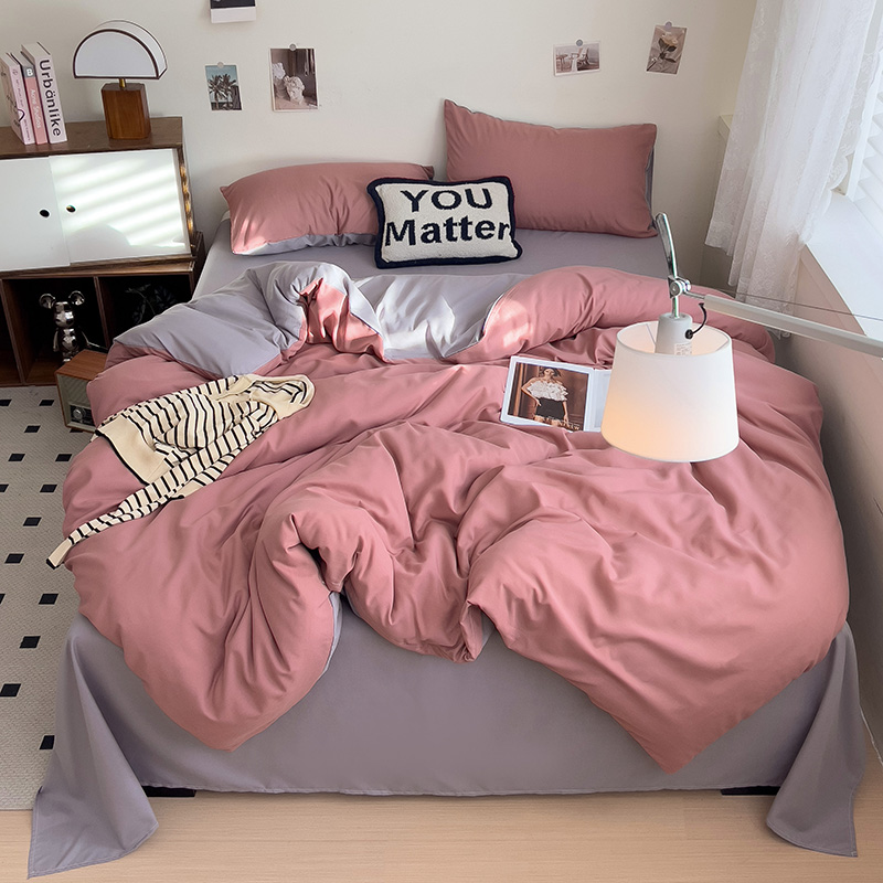 当前位置: 91家纺网 > 商品网购 > 床品套件 > 四件套 > 水洗棉四件套 > 维娜斯家纺 2025新款水洗棉纯色双拼四件套亲肤柔单人被套床单学生三件套 藕色+烟灰