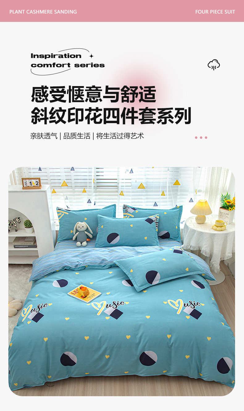 当前位置: 91家纺网 > 商品网购 > 床品套件 > 四件套 > 化纤普通四件套 > 简冠家纺 2024直播爆款北欧风亲肤植物羊绒磨毛四件套 宜家田园