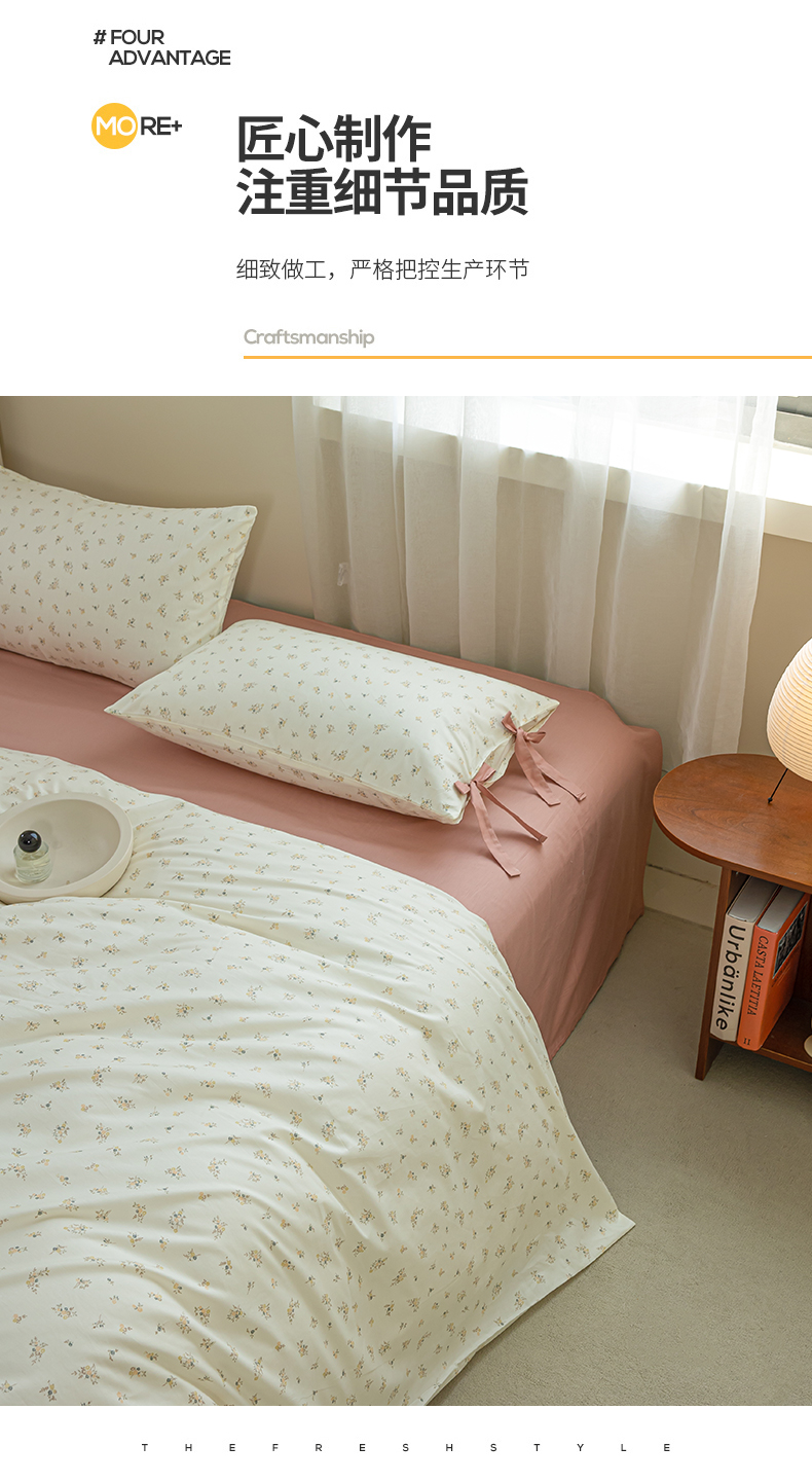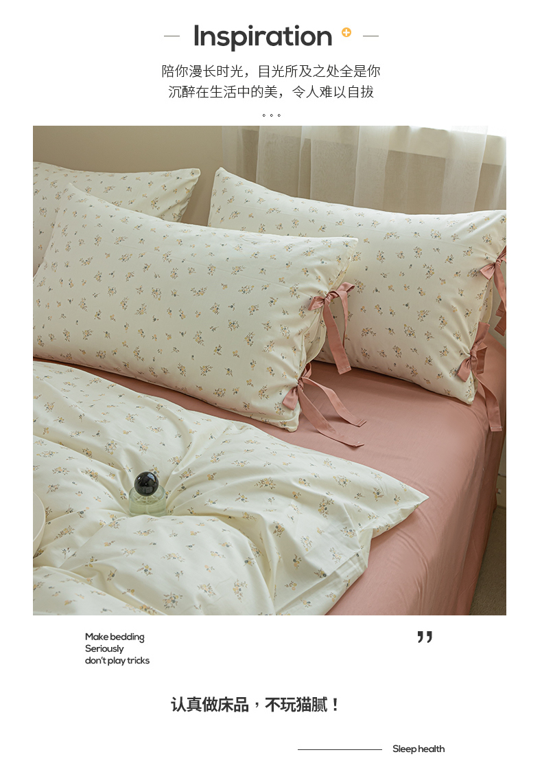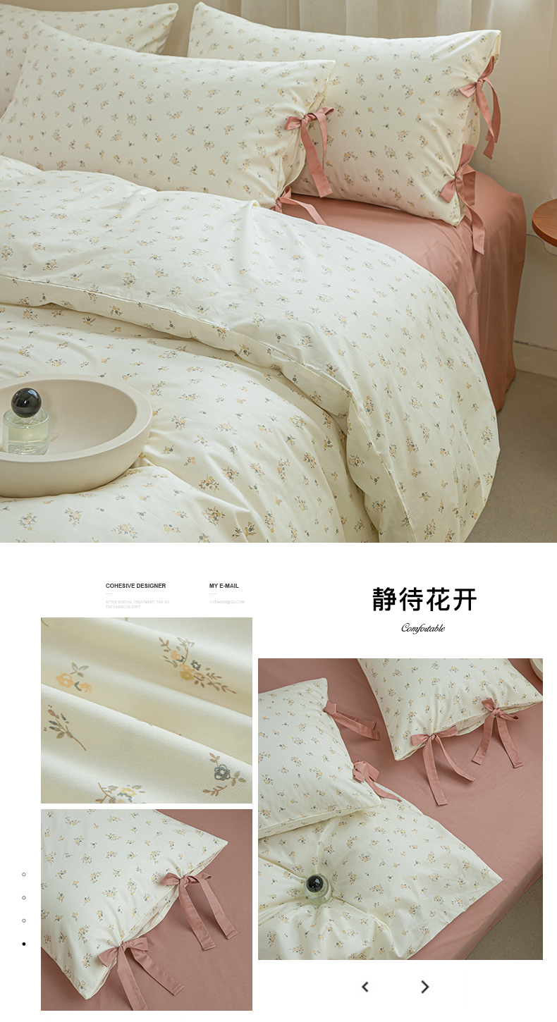 当前位置: 91家纺网 > 商品网购 > 床品套件 > 四件套 > 全棉普通四件套 > 绫韵家纺 2025春夏新款全棉ins小碎花13372纯棉田园风床单床笠四件套绑带款蝴蝶结系列 静待花开