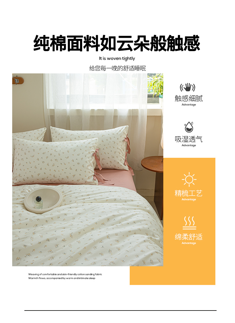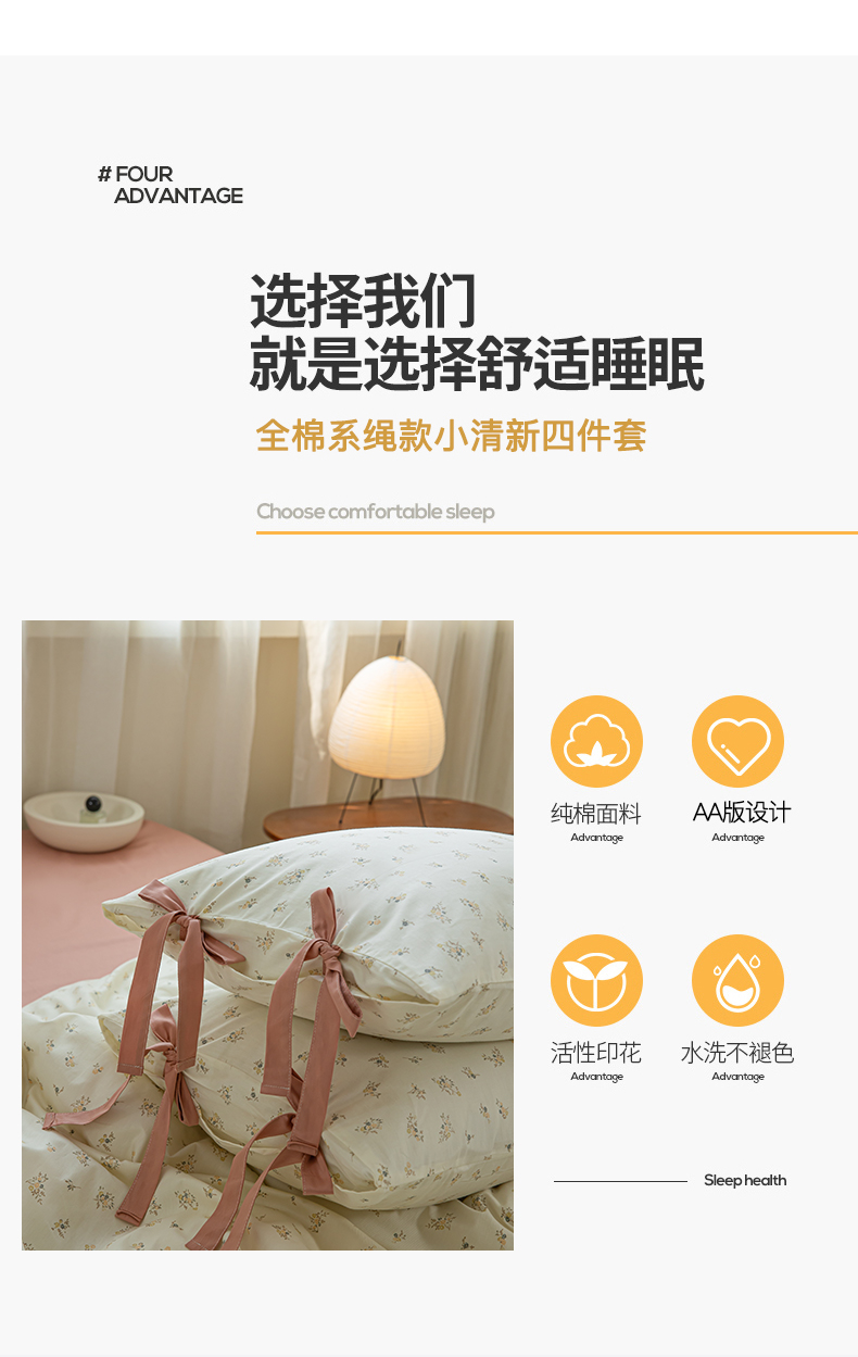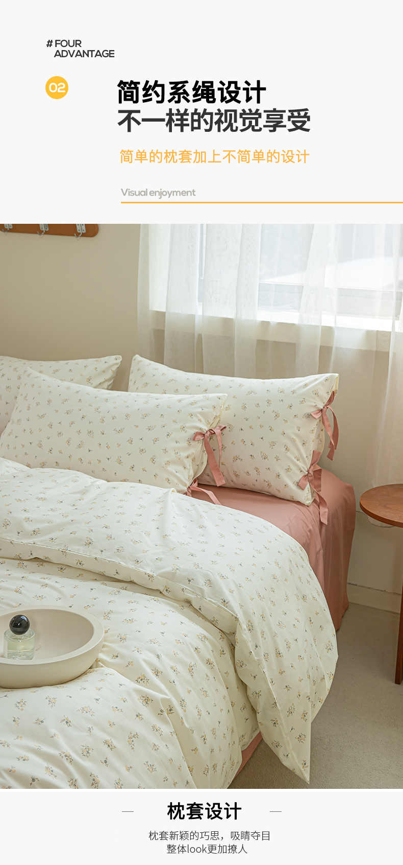 当前位置: 91家纺网 > 商品网购 > 床品套件 > 四件套 > 全棉普通四件套 > 绫韵家纺 2025春夏新款全棉ins小碎花13372纯棉田园风床单床笠四件套绑带款蝴蝶结系列 静待花开