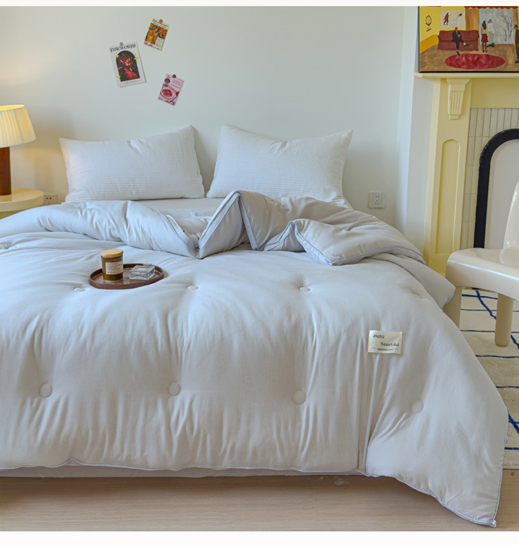 (买家秀爆款花色不断货)A类母婴级棉豆豆大豆被子春秋被秋冬被棉豆豆大豆纤维被子被芯水洗棉大豆被子纯色 棉豆豆-斑灰