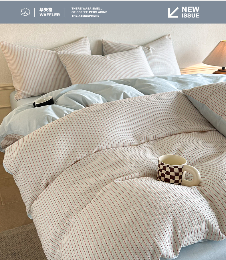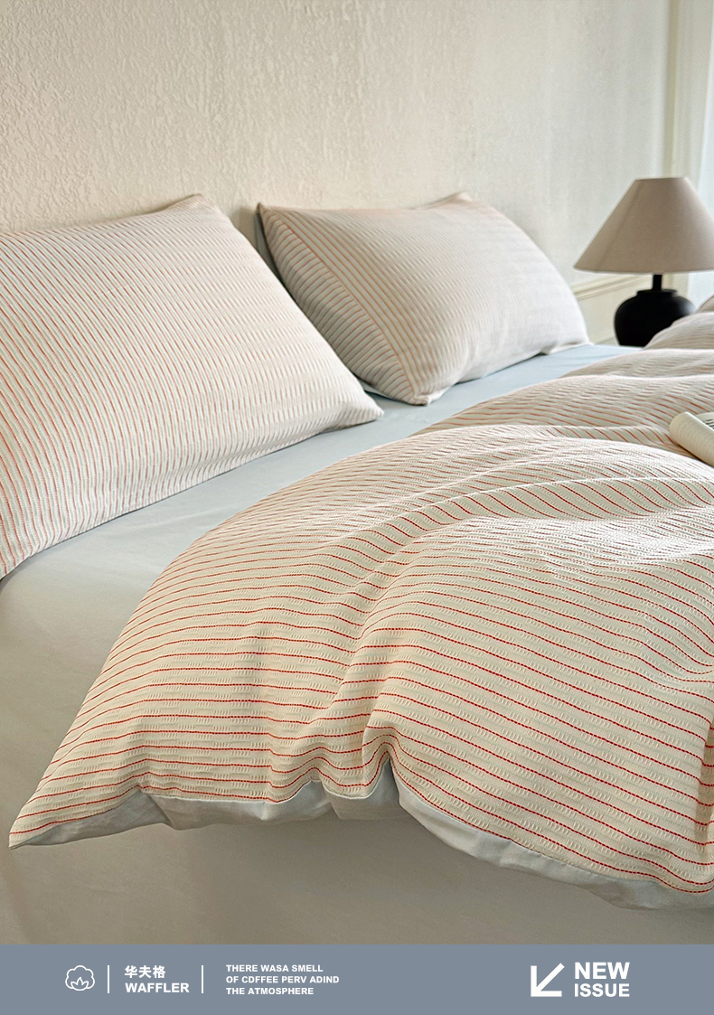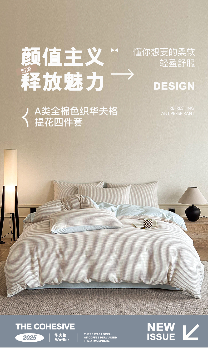 2025新款全棉色织华夫格提花四件套-森韵 森韵-红