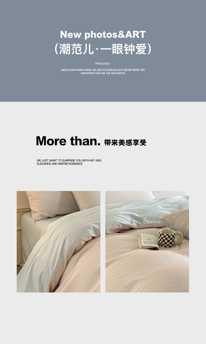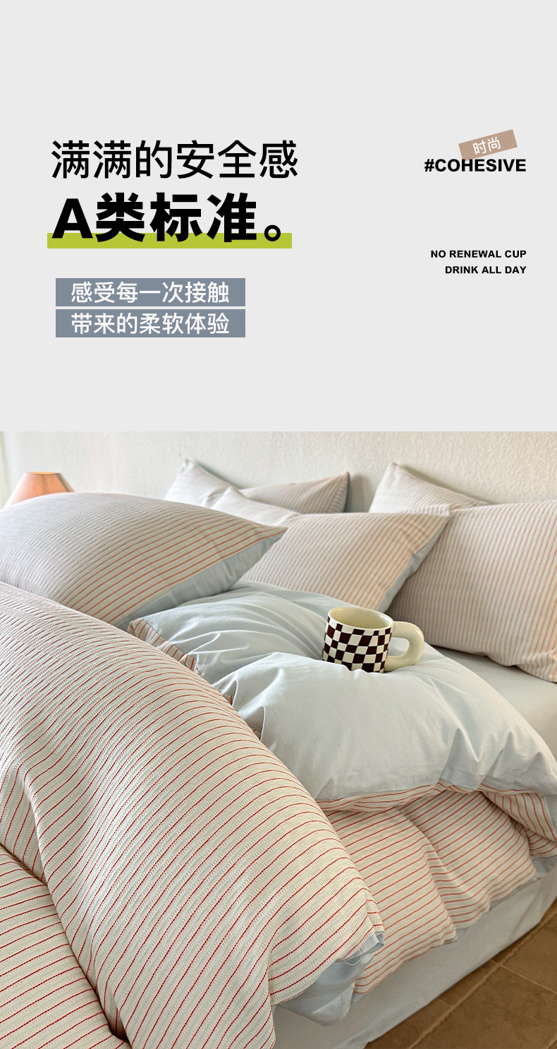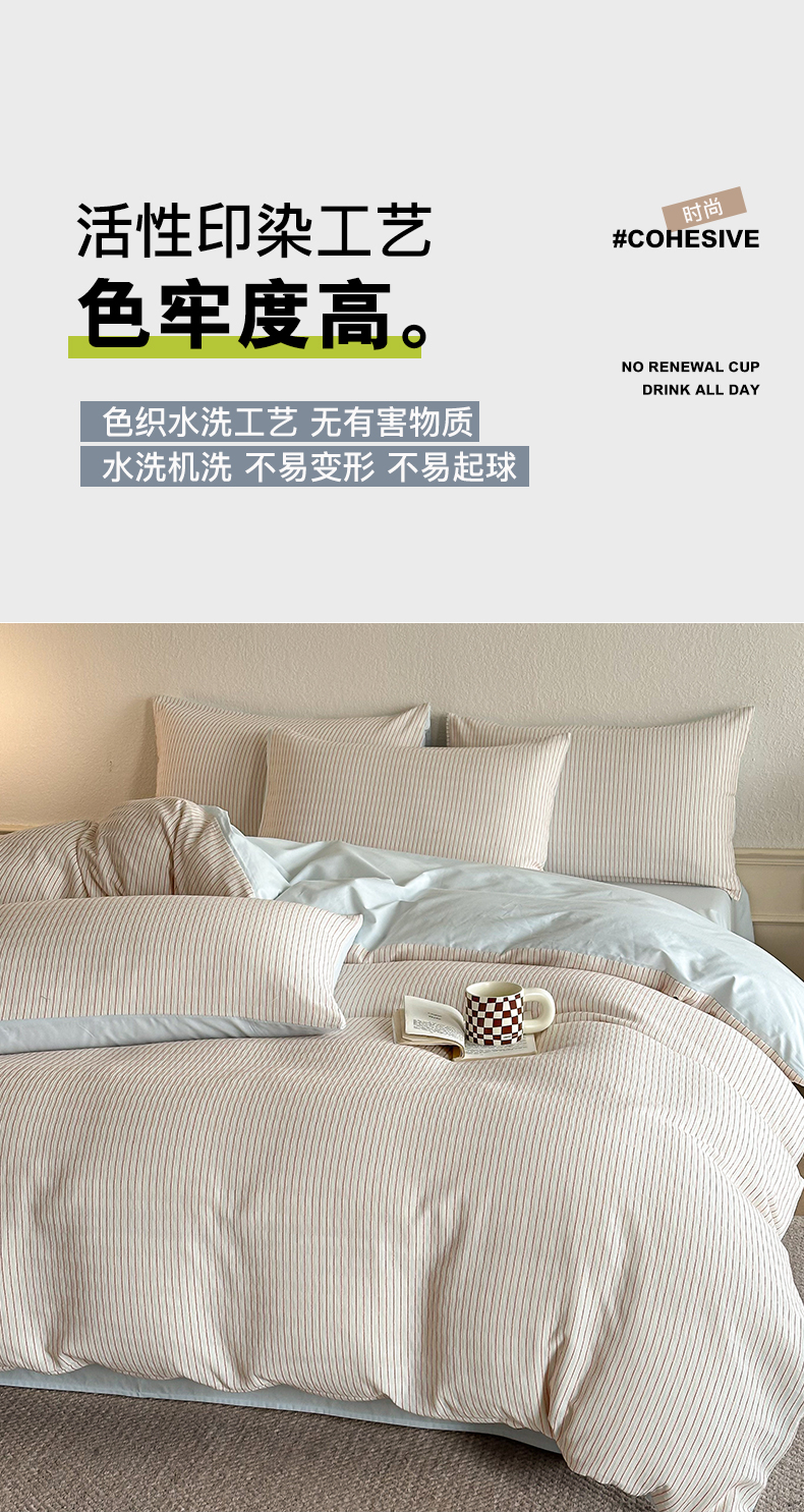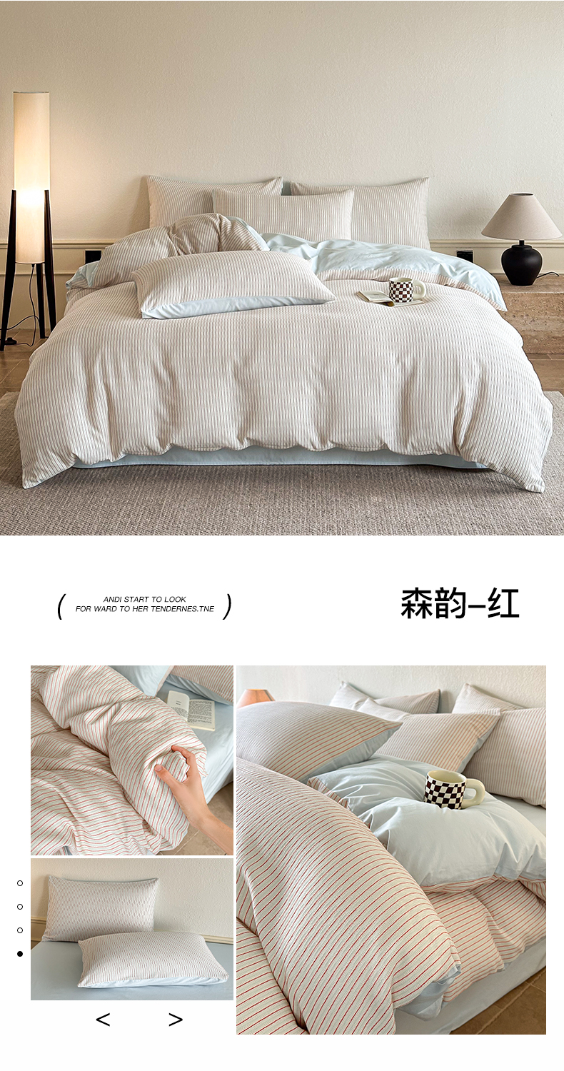 (总)格里芬家纺 2025新款全棉加厚磨毛简约条纹印花四件套,雅韵-红咖,雅韵-绿,雅韵-兰,雅韵-紫红