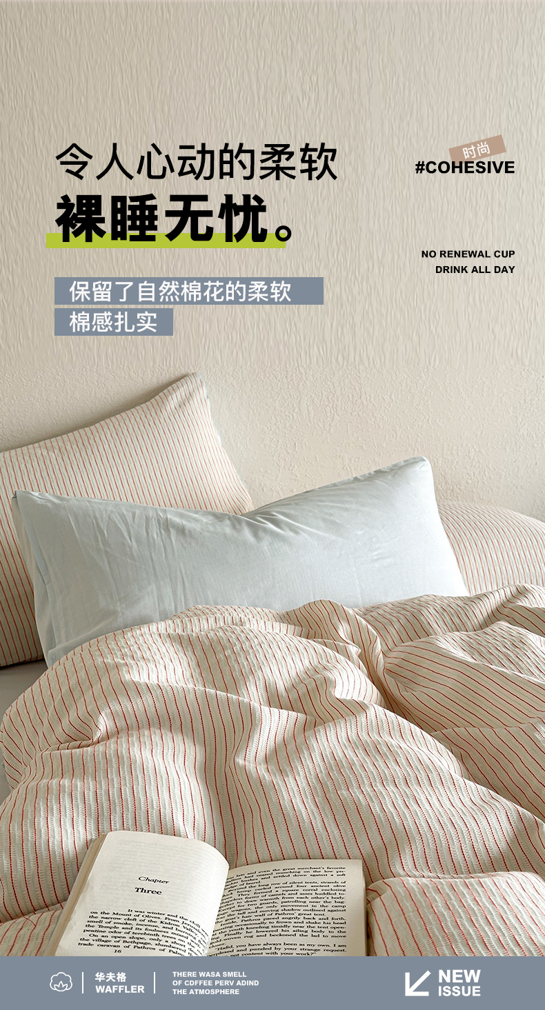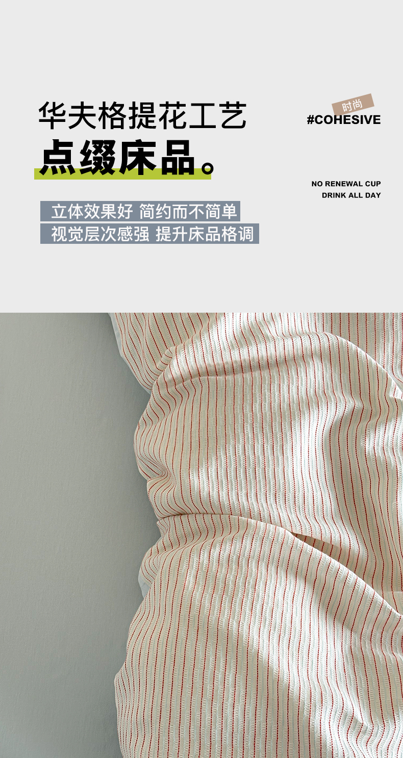 商品名称:2025新款全棉色织华夫格提花四件套-森韵 森韵-红