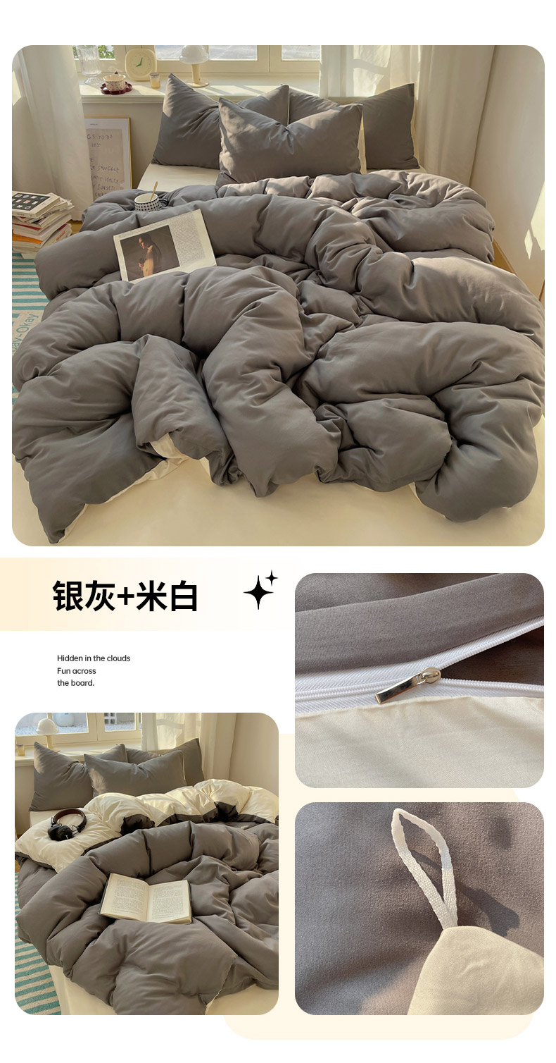 商品名称:芷凡家纺 2025新款亲肤棉纯色双拼四件套 银灰+米白
