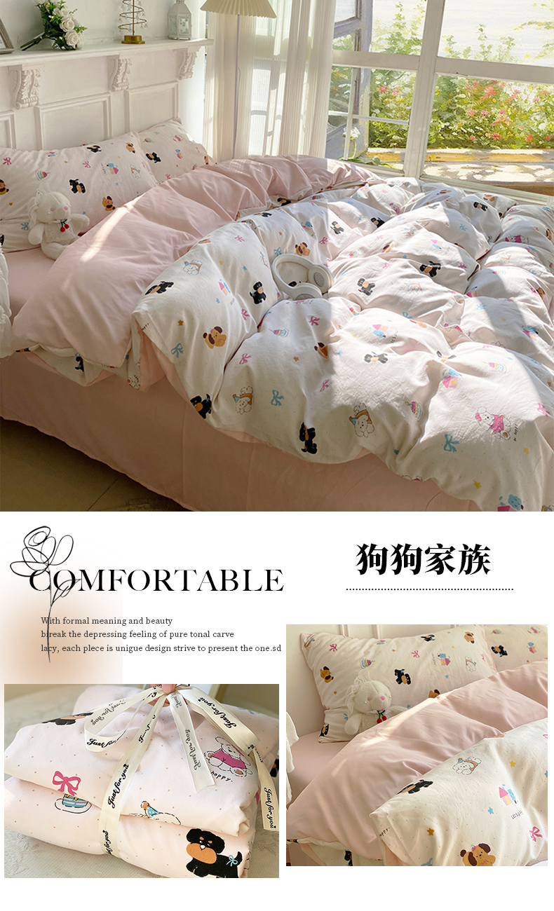 当前位置: 91家纺网 > 商品网购 > 床品套件 > 四件套 > 水洗棉四件套 > 丫丫家纺 2025新小红书直播热款水洗糯小棉四件套软敷敷糯叽叽ins卡通小清新学生床加大号小号单被套单床笠三四 狗狗家族