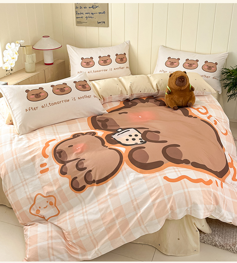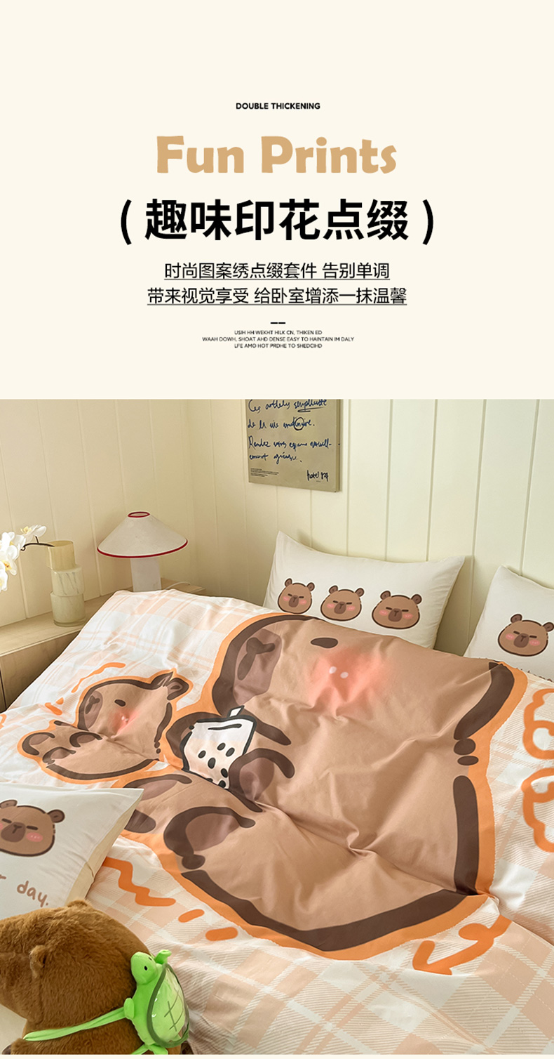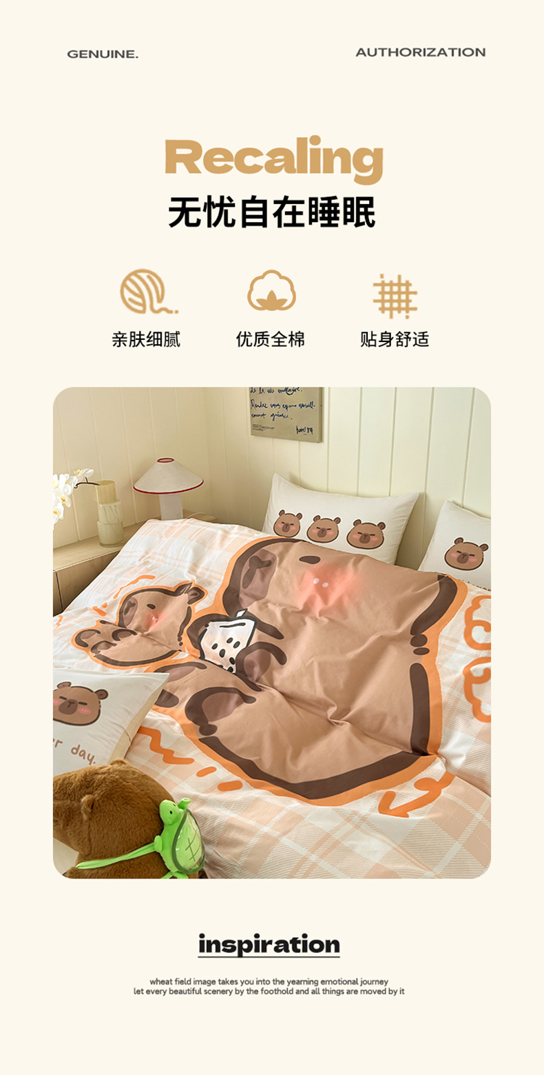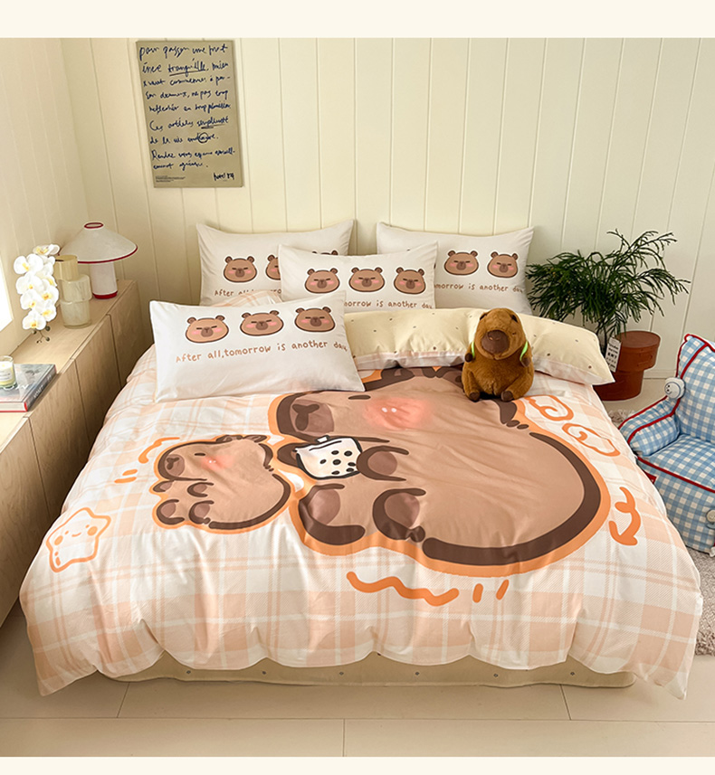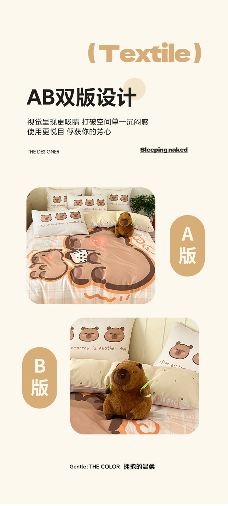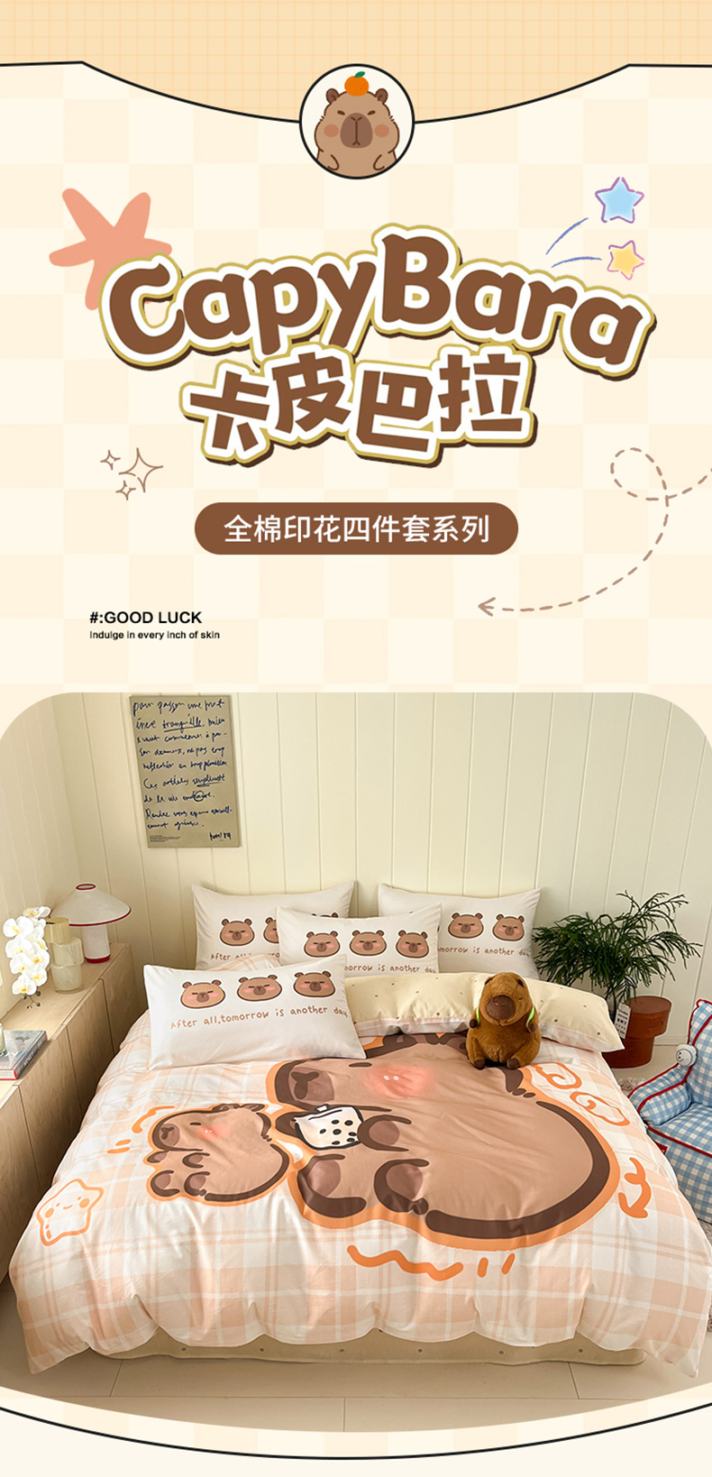 当前位置: 91家纺网 > 商品网购 > 床品套件 > 四件套 > 全棉普通四件套 > 博雅 2025新款卡皮巴拉系列全棉印花四件套 可爱卡皮巴拉