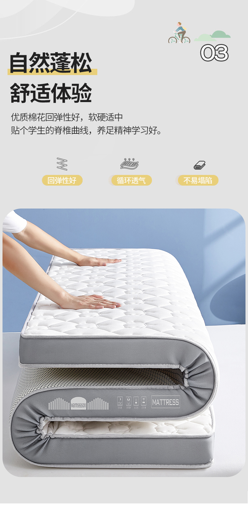 当前位置: 91家纺网 > 商品网购 > 床垫/床褥 > 慢回弹床垫 > 暖季家纺 2025新款立体款棉花床垫 立体灰-棉棉白