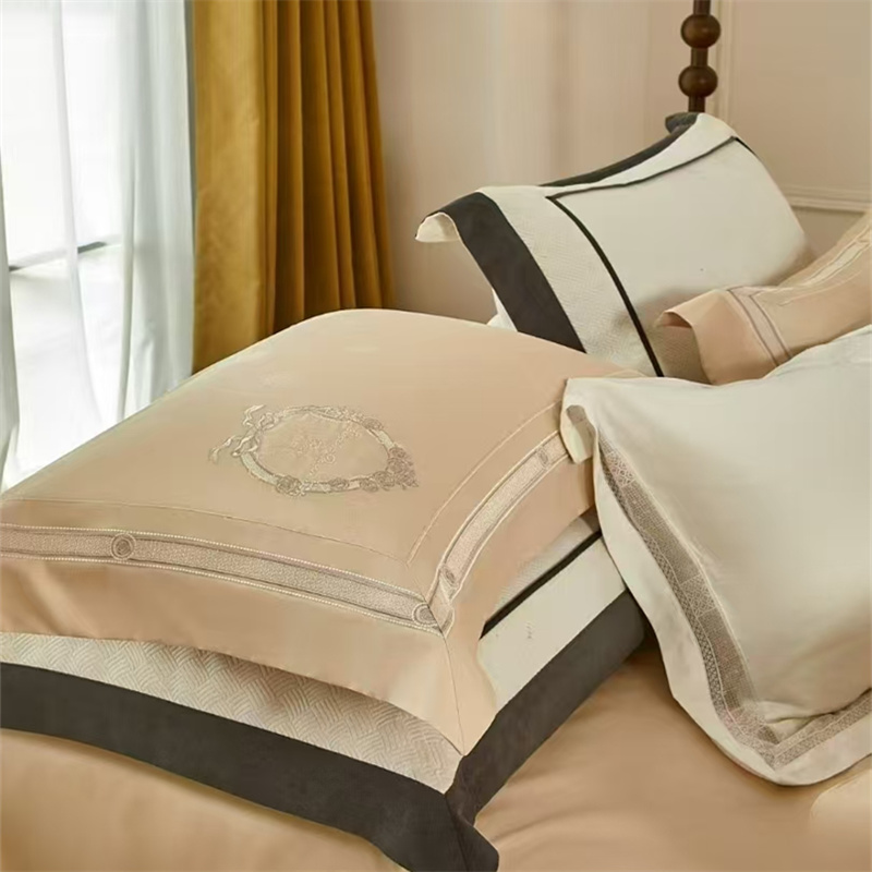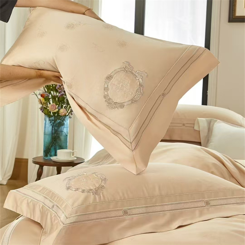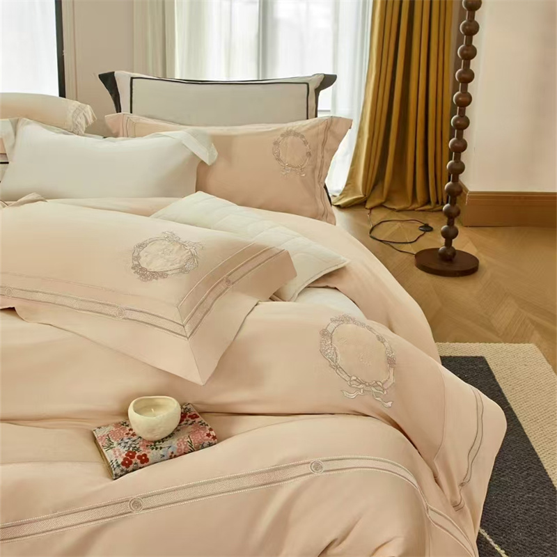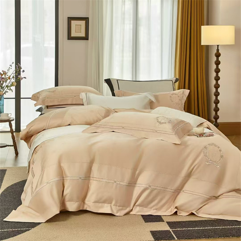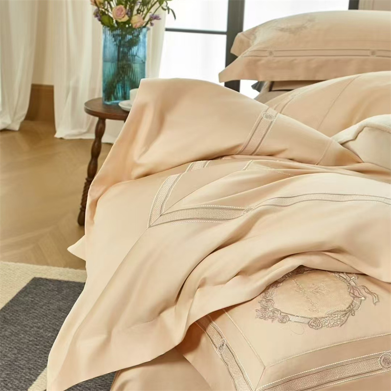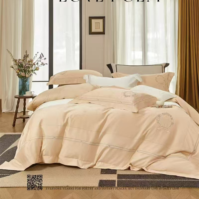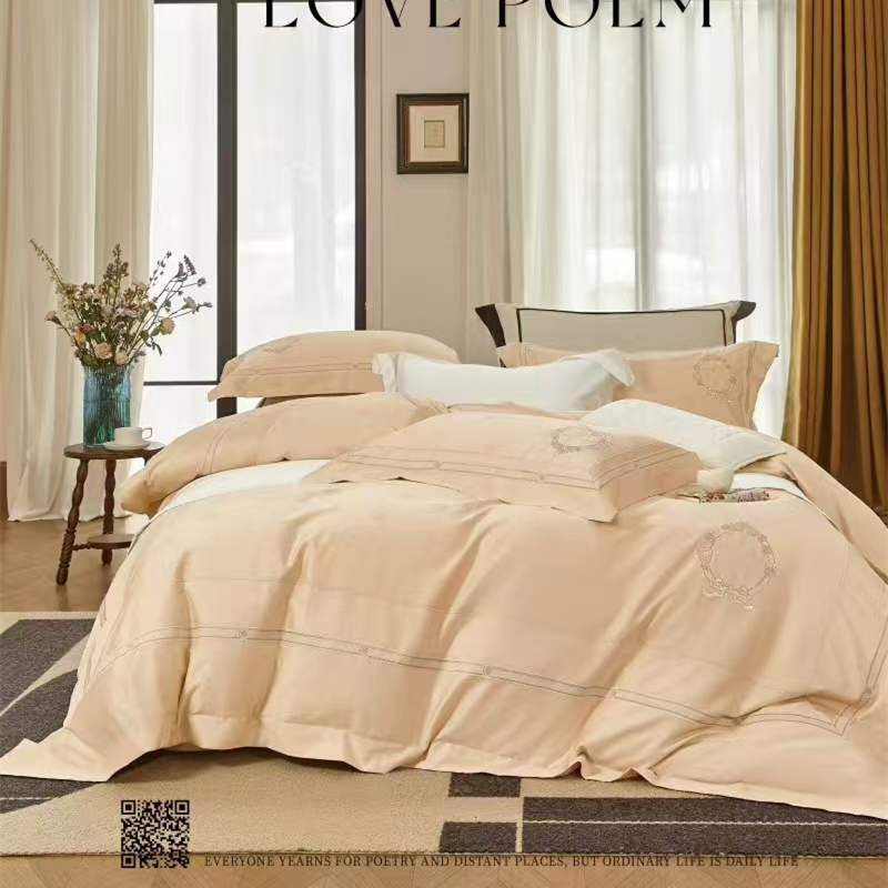 (总)玖玖爱家纺 2023新款120支贡缎长绒棉刺绣梦柔系列四件套,梦柔-香槟金,梦柔-香橙桔,梦柔-高级灰,梦柔-水蓝,梦柔-芙蓉玉