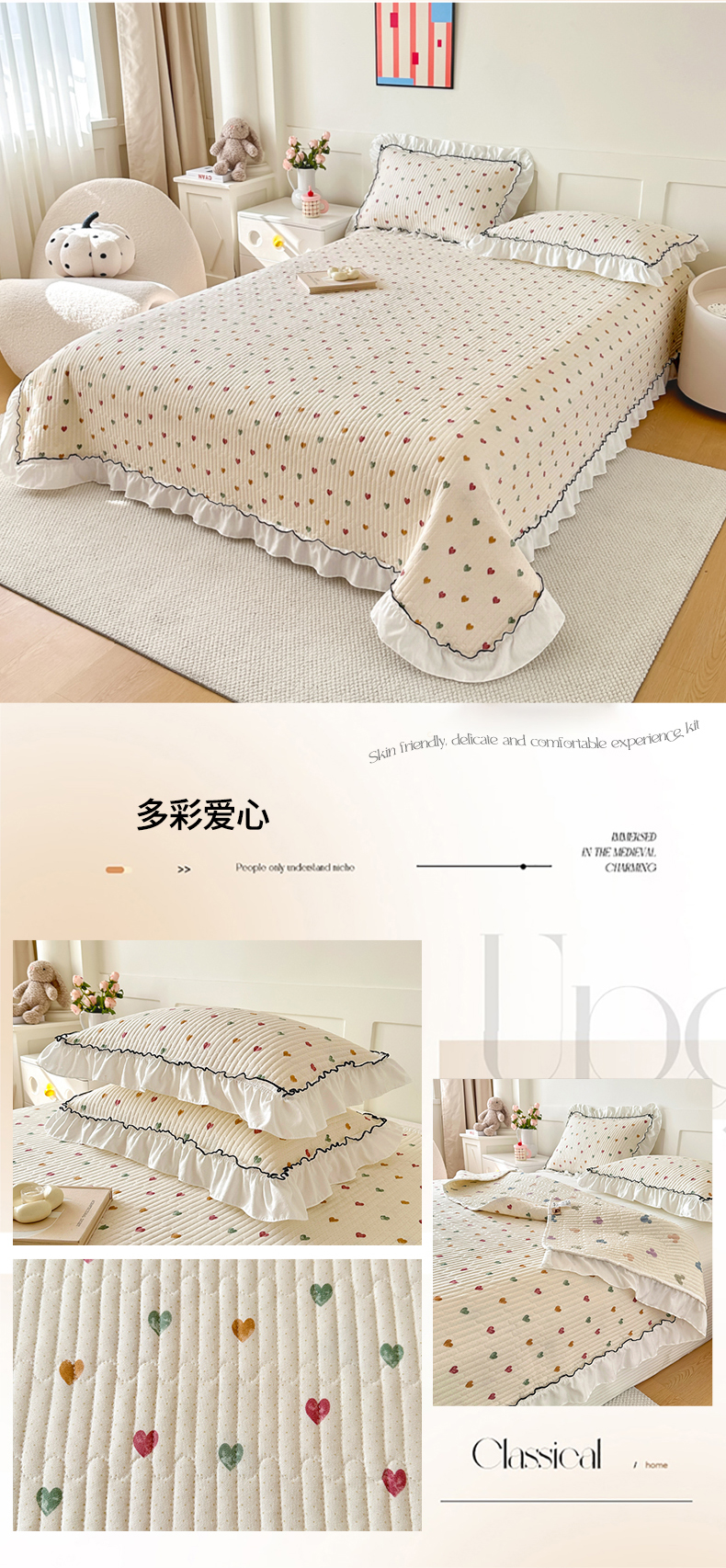 岚吉家纺 2025新款有氧双层纱花边床盖系列 多彩爱心